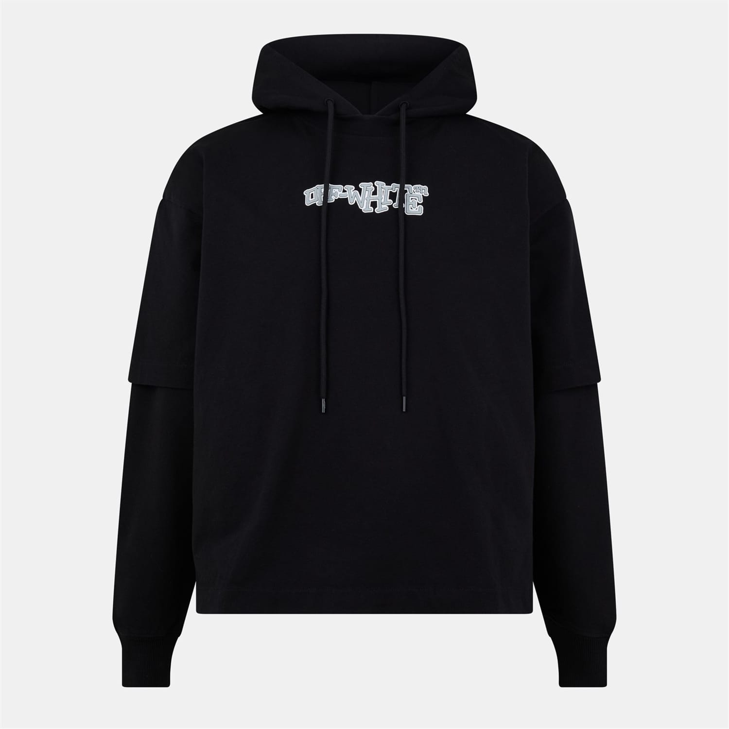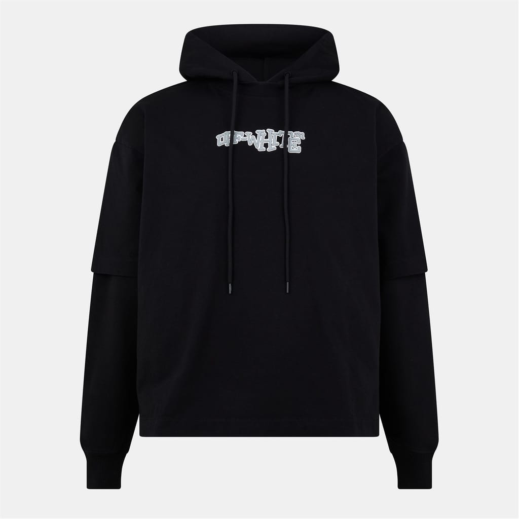 This Off White top features a hooded design with a drawstring closure, offering a casual and relaxed look. The long sleeves with drop shoulders and ribbed cuffs provide a comfortable fit. Adorned with a graphic print and logo lettering, this regular fit top is perfect for a laid-back style. -