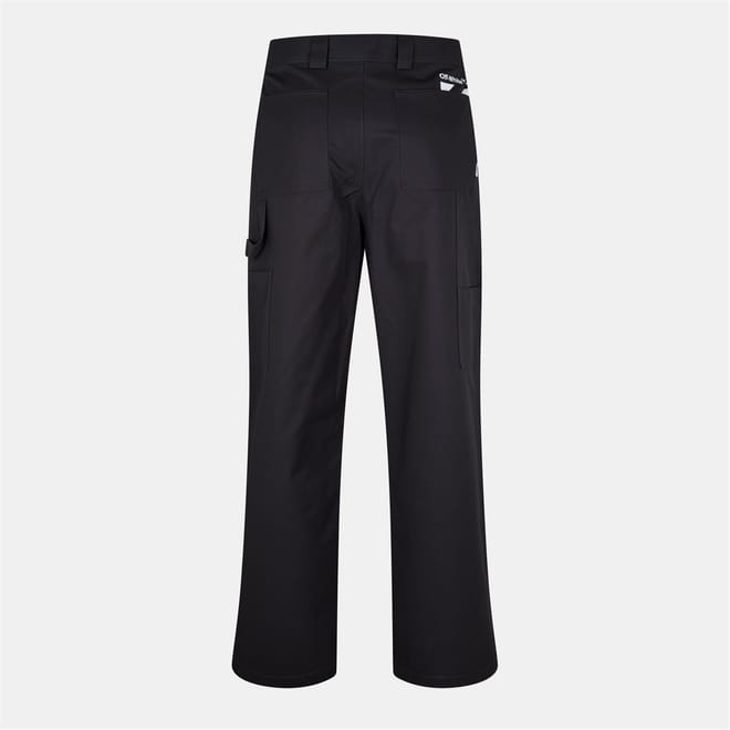 Off White cargo pants feature a regular fit with a zip fly and button closure. These pants are designed with practical pockets, offering both style and functionality. Ideal for those seeking a blend of comfort and utility in their wardrobe. -