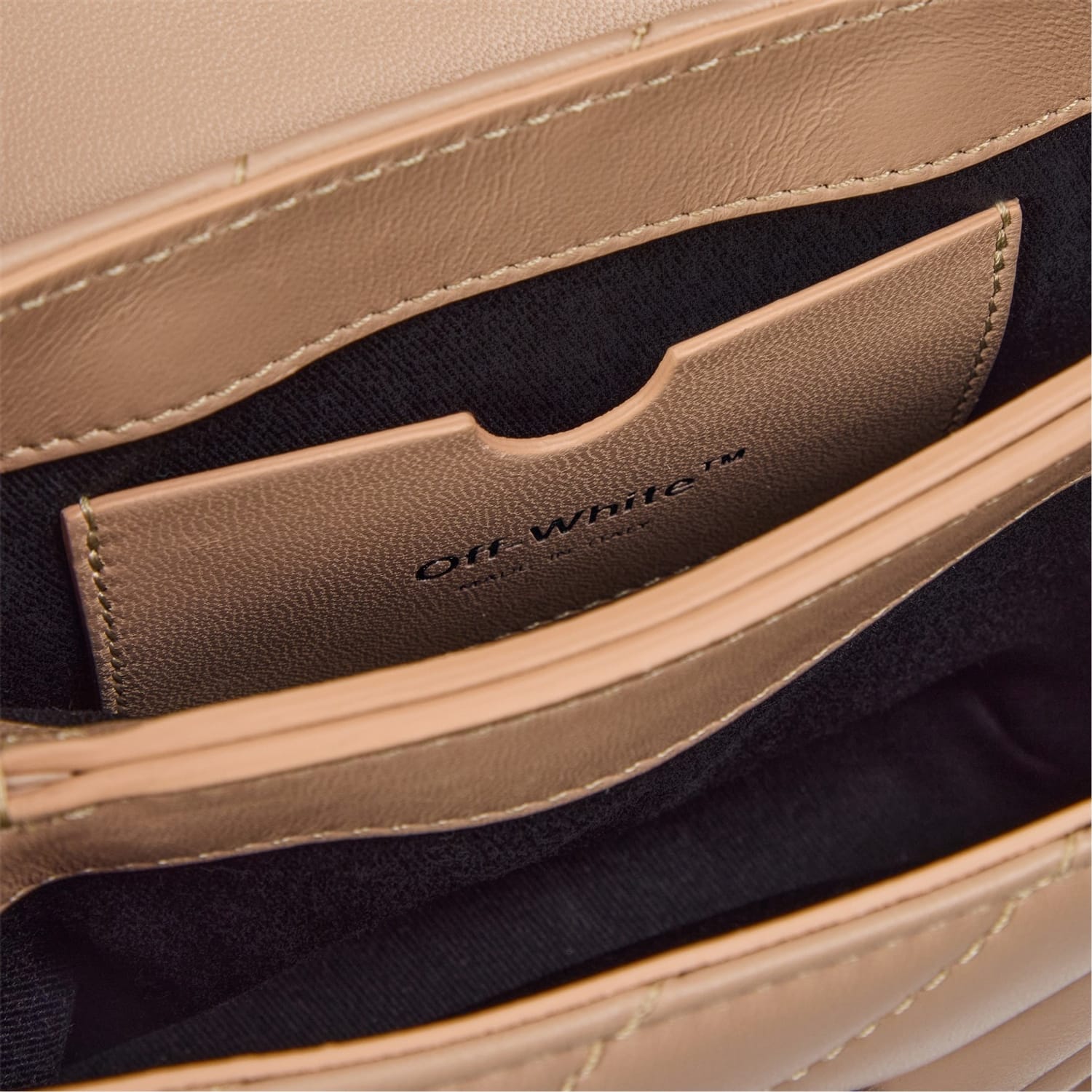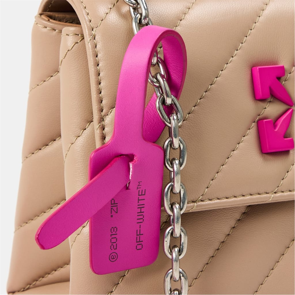 Discover the Off White cross body bag, a stylish accessory featuring a ribbed pattern and chain embellishments. This shoulder bag is adorned with the iconic logo, offering a blend of fashion and functionality. Perfect for those who appreciate contemporary design and quality craftsmanship. -