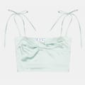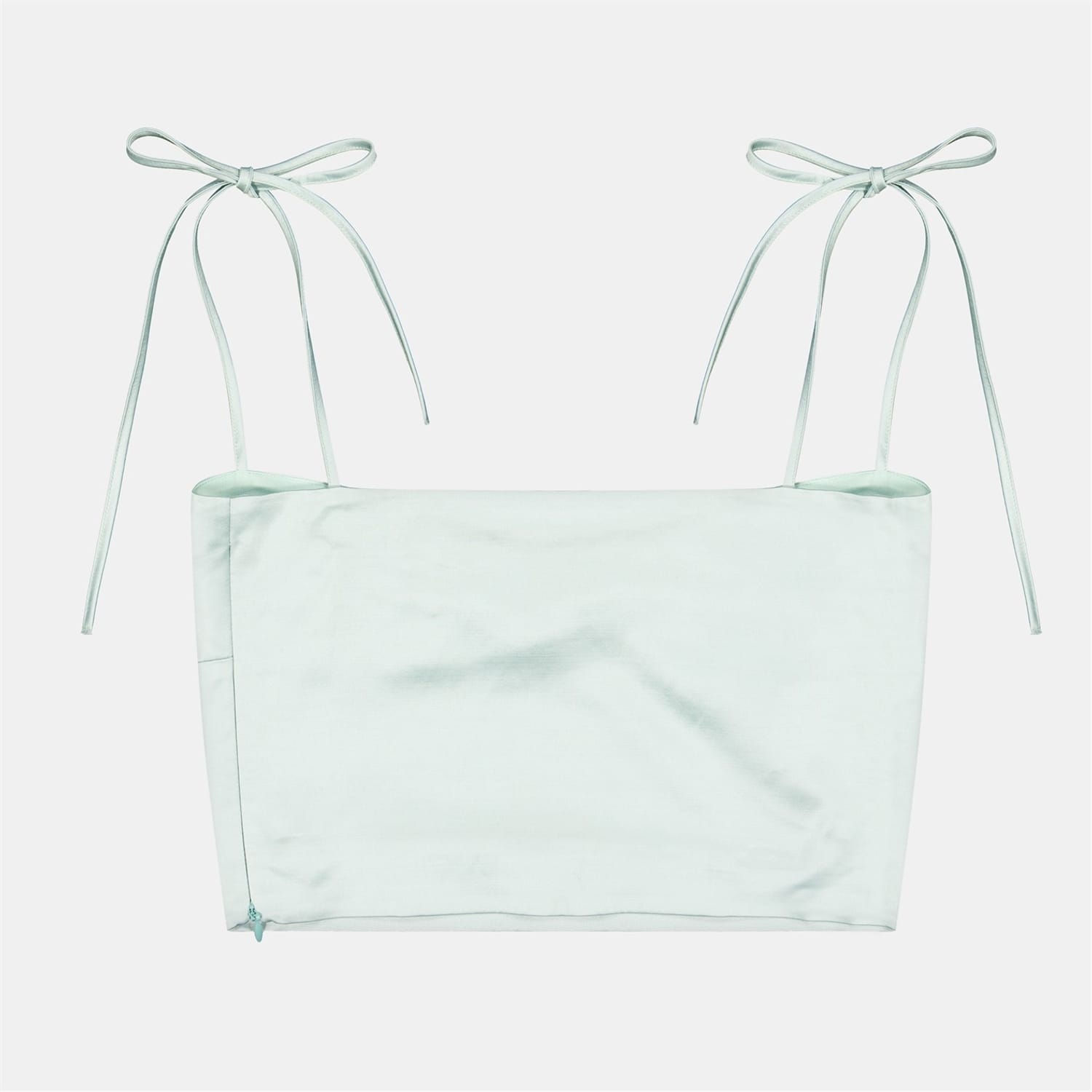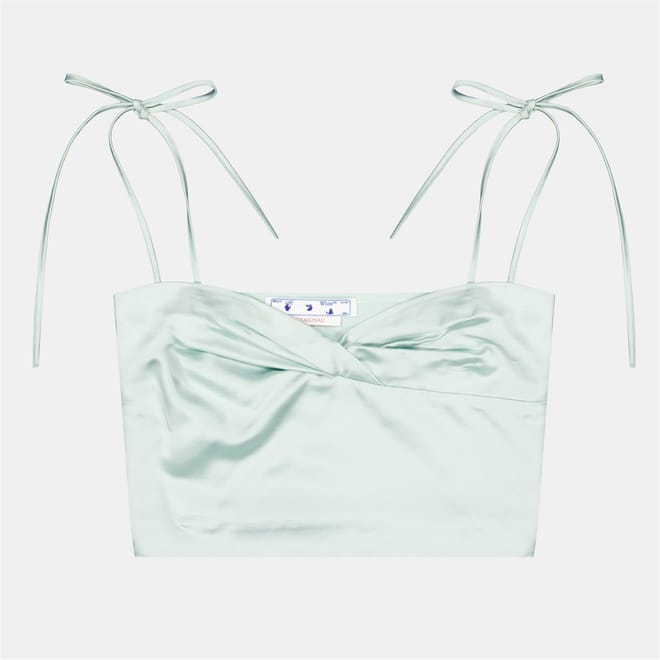 This Off White top features a sleek spaghetti strap design with a side zipper closure. The sleeveless, slim fit silhouette is enhanced by cut-out embellishments, offering a modern touch. Crafted in a solid pattern, this cropped top is perfect for those seeking a contemporary style. -