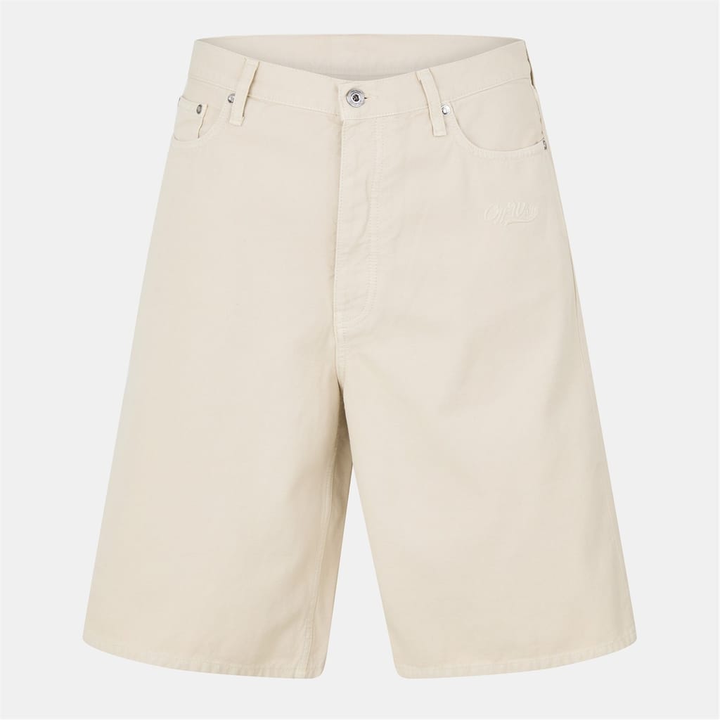 Discover Off-White's solid woven shorts, a perfect blend of style and functionality. These cargo shorts feature a button and zip fly closure, offering a secure fit. The jean shorts style adds a contemporary touch, while the iconic logo embellishment provides a signature finish. Ideal for casual collections, these shorts are a versatile addition to any wardrobe. -