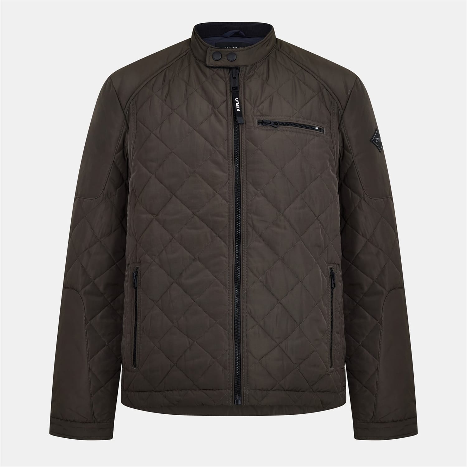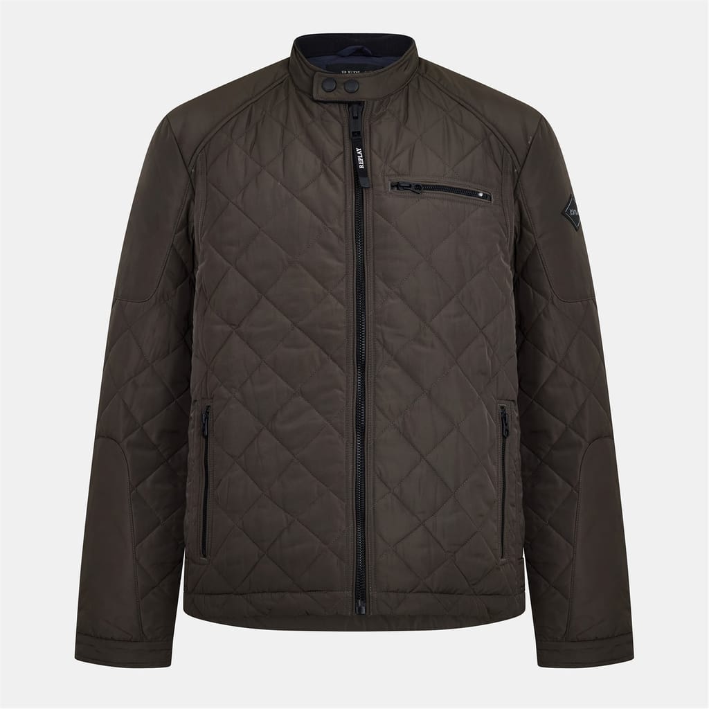 Replay's Men's Biker Quilted Jacket features structured diamond stitching with contemporary biker styling. Clean lines and detailing create an adaptable outerwear piece that balances urban edge with practical warmth, ideal for men seeking casual fashion and everyday style apparel.