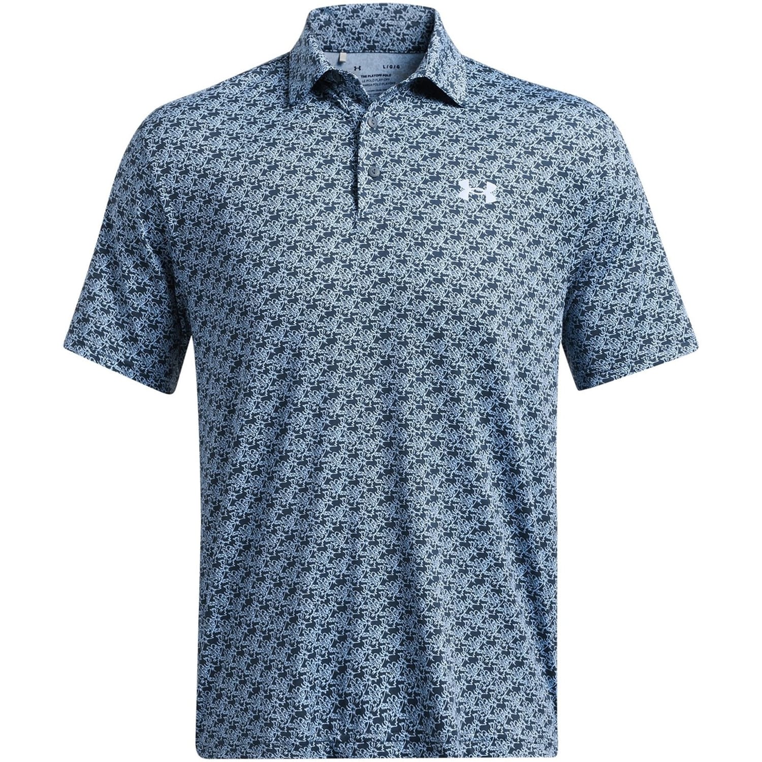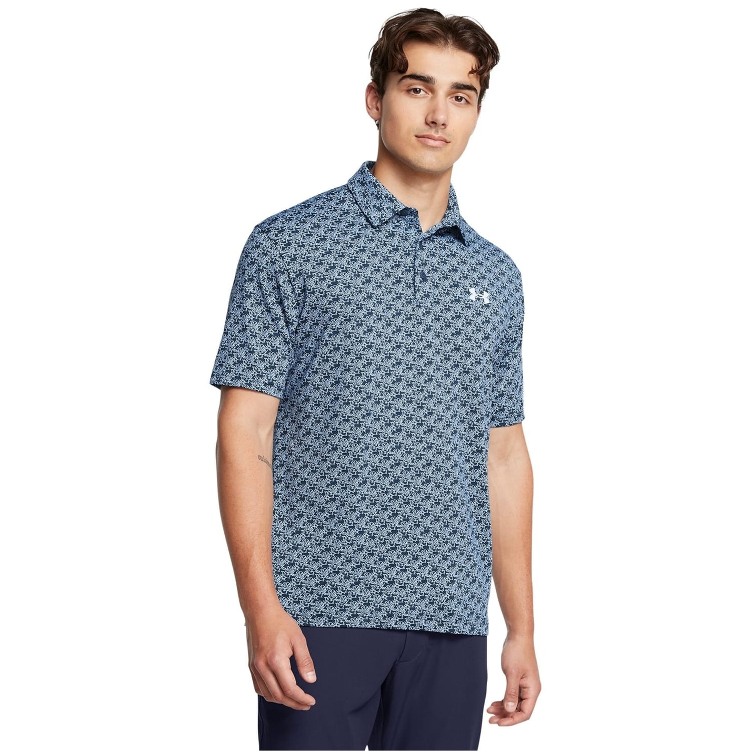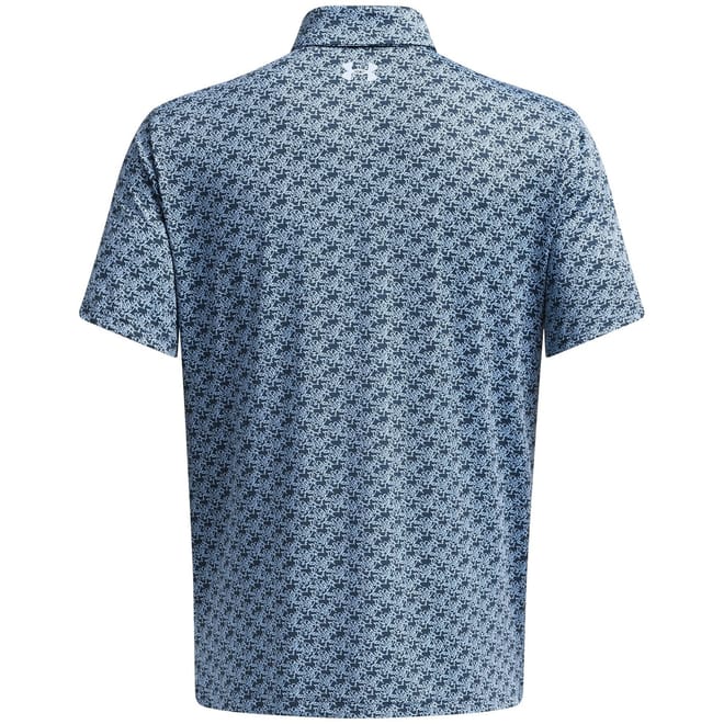 This Under Armour top is designed for activewear enthusiasts. Featuring a geometric pattern, it offers a regular fit with short sleeves and a polo collar. The button closure adds a touch of practicality, while the logo embellishment highlights the brand's identity. Ideal for performance activities, this top combines style and functionality seamlessly. -