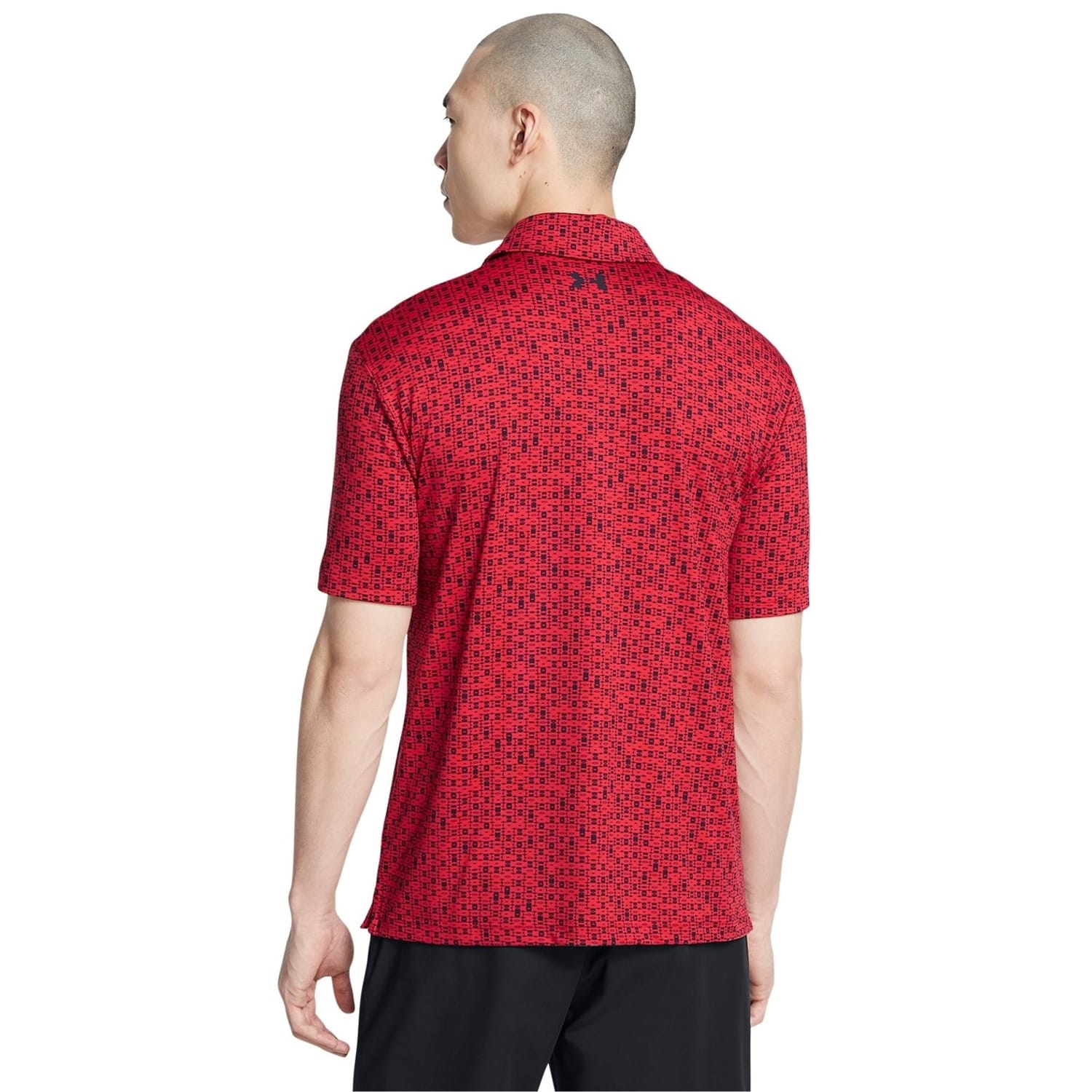 This Under Armour top is designed for activewear enthusiasts. Featuring a geometric pattern, it offers a regular fit with short sleeves and a polo collar. The button closure adds a classic touch, while the logo embellishment highlights the brand's identity. Ideal for performance activities, this top combines style and functionality seamlessly. -