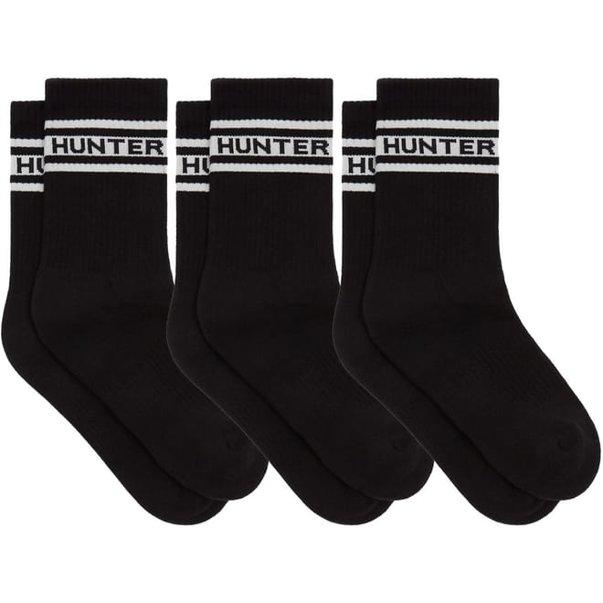 Crafted from an organic cotton and polyester blend, the 3 pack of crew length socks from Hunter feature mesh panels for breathability as well as an arch support for additional comfort for days in your boots. The knitted branding in a pop of chilli pepper red complete the look. -