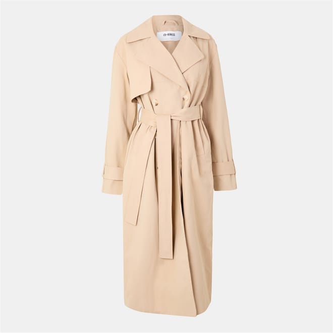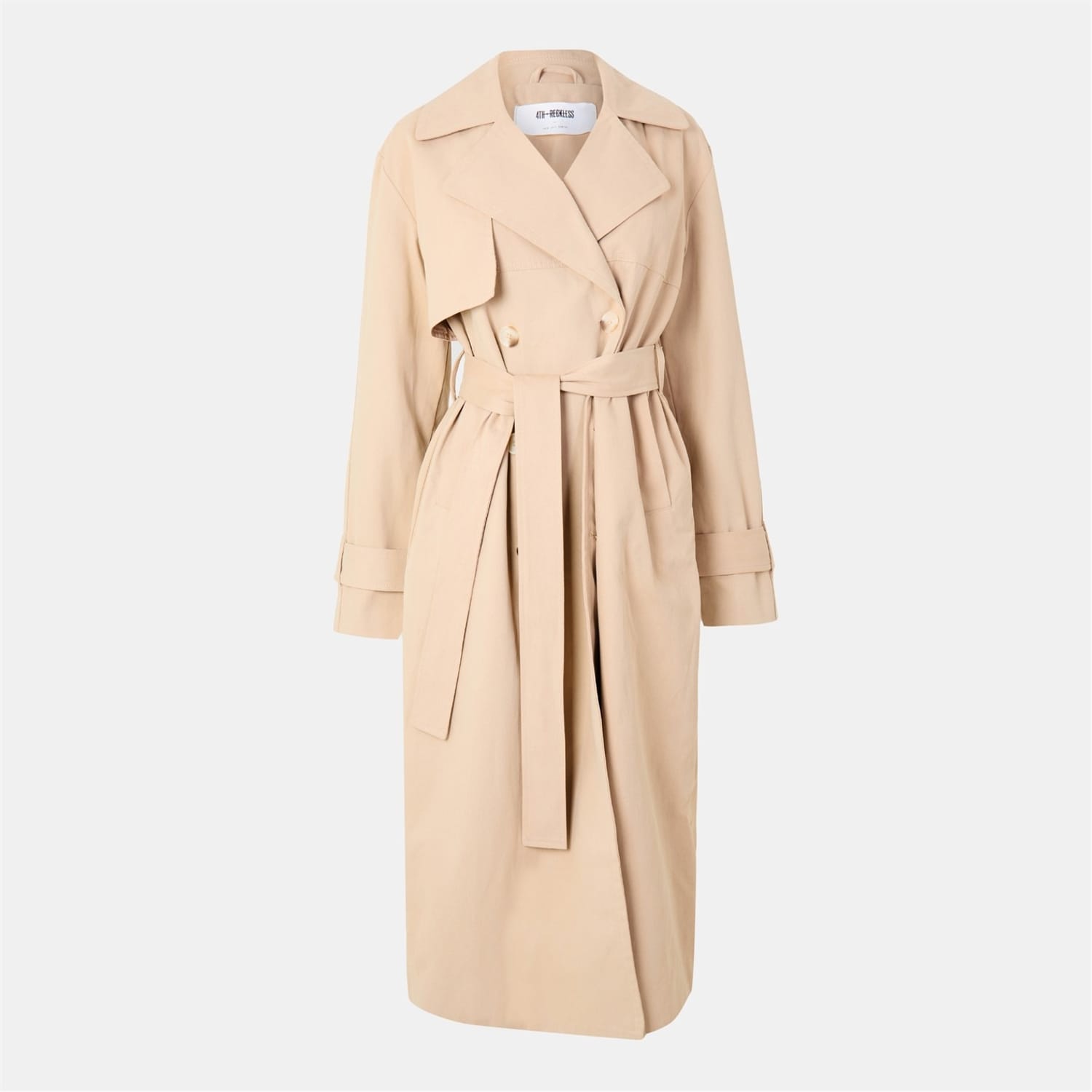 Discover the 4th & Reckless trench coat, a stylish addition to your wardrobe. This solid-coloured piece features a lapel collar and a straight hem, offering a relaxed fit. The coat is designed with a belt and button closure, complemented by roll-up cuffs and practical pockets. Perfect for those seeking a blend of functionality and fashion. -