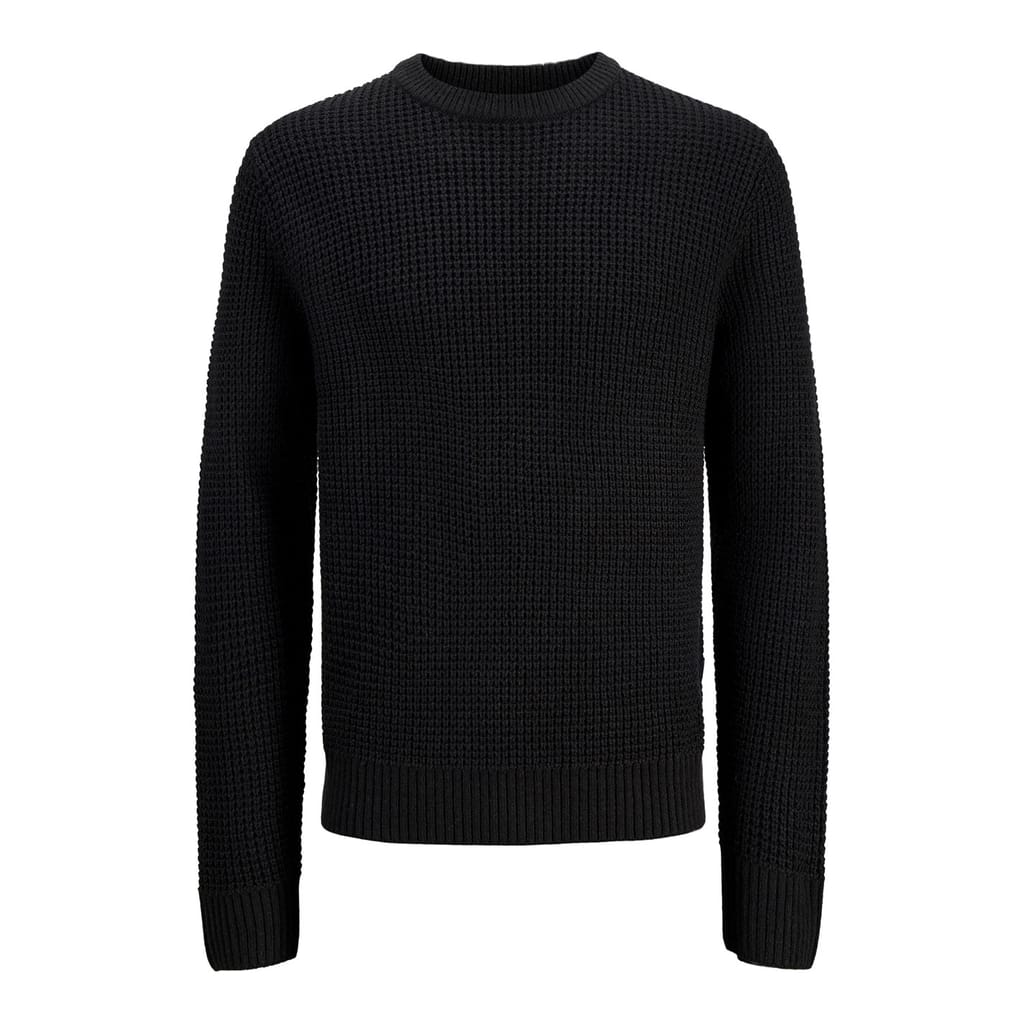Discover the Jack & Jones top, featuring a waffle textured knit design. This long sleeve piece offers a regular fit, complemented by a crew neck and ribbed cuffs. The ribbed collar adds a touch of detail, making it a versatile addition to your wardrobe. -
