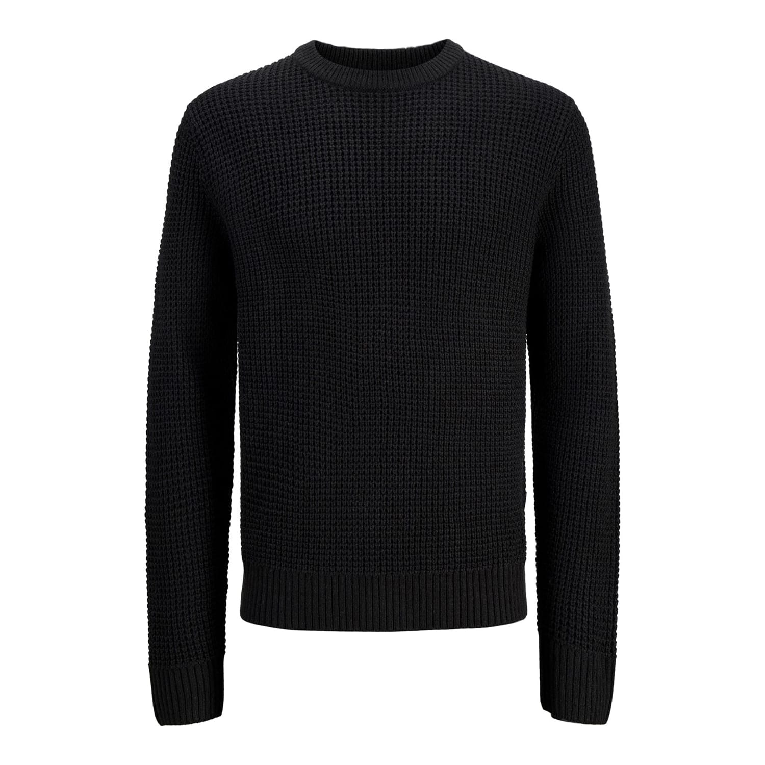 Discover the Jack & Jones top, featuring a waffle pattern and crafted from knit material. This regular fit design includes long sleeves with ribbed cuffs and a crew neck, complemented by a ribbed collar. Ideal for a casual look, this slip-on top combines comfort and style effortlessly. -