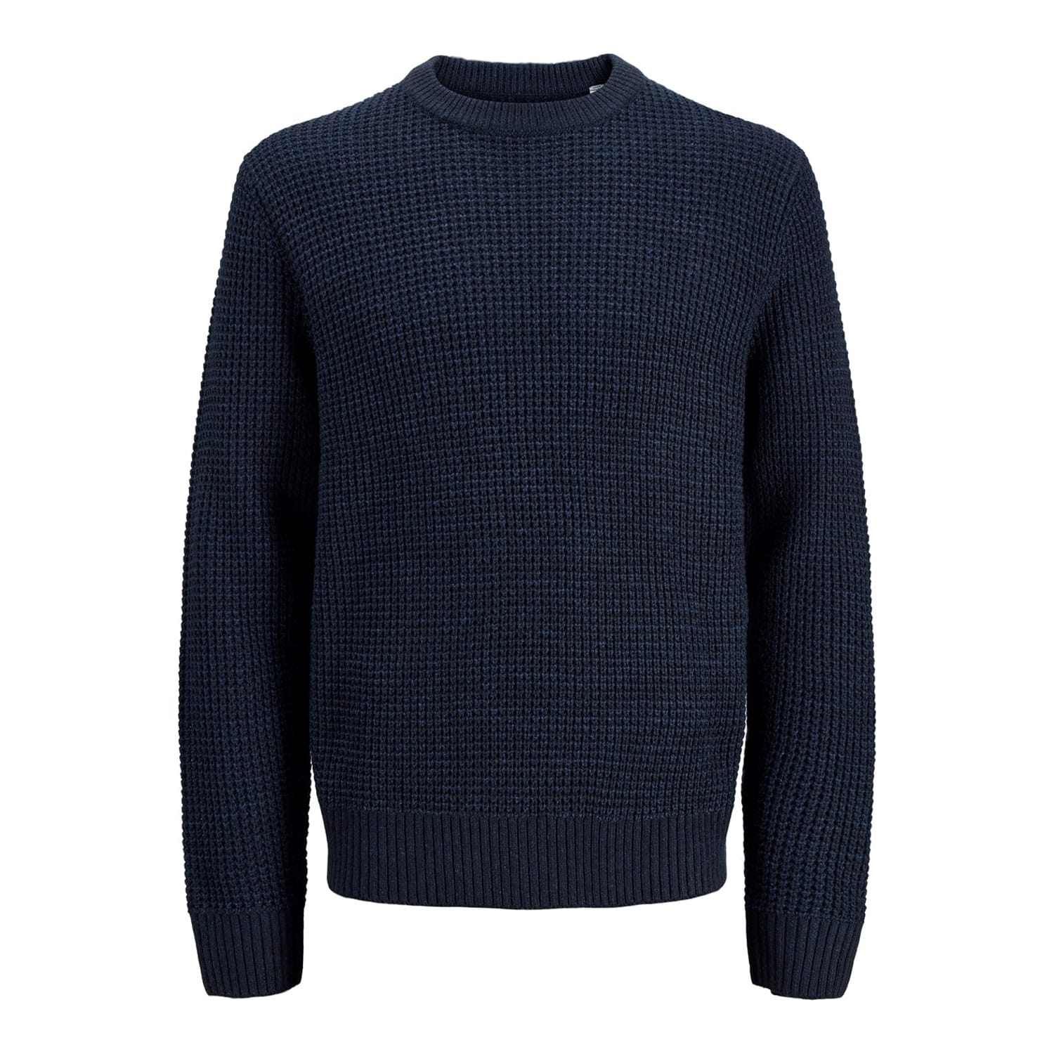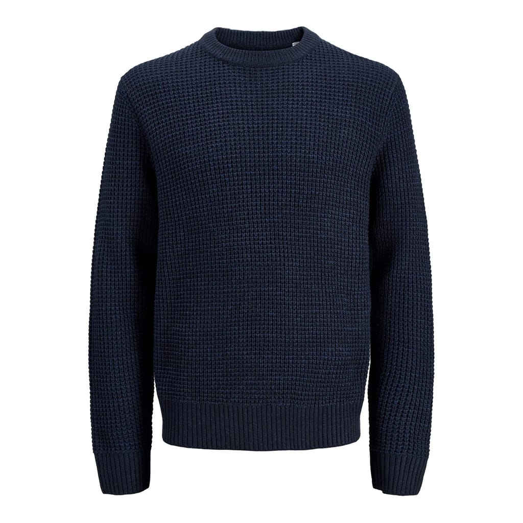 Discover the Jack & Jones top, crafted for winter with a knit design. This long-sleeve piece features a crew neck and regular fit, offering comfort and style. The waffle-textured pattern adds a unique touch, while ribbed cuffs and collar enhance its appeal. -
