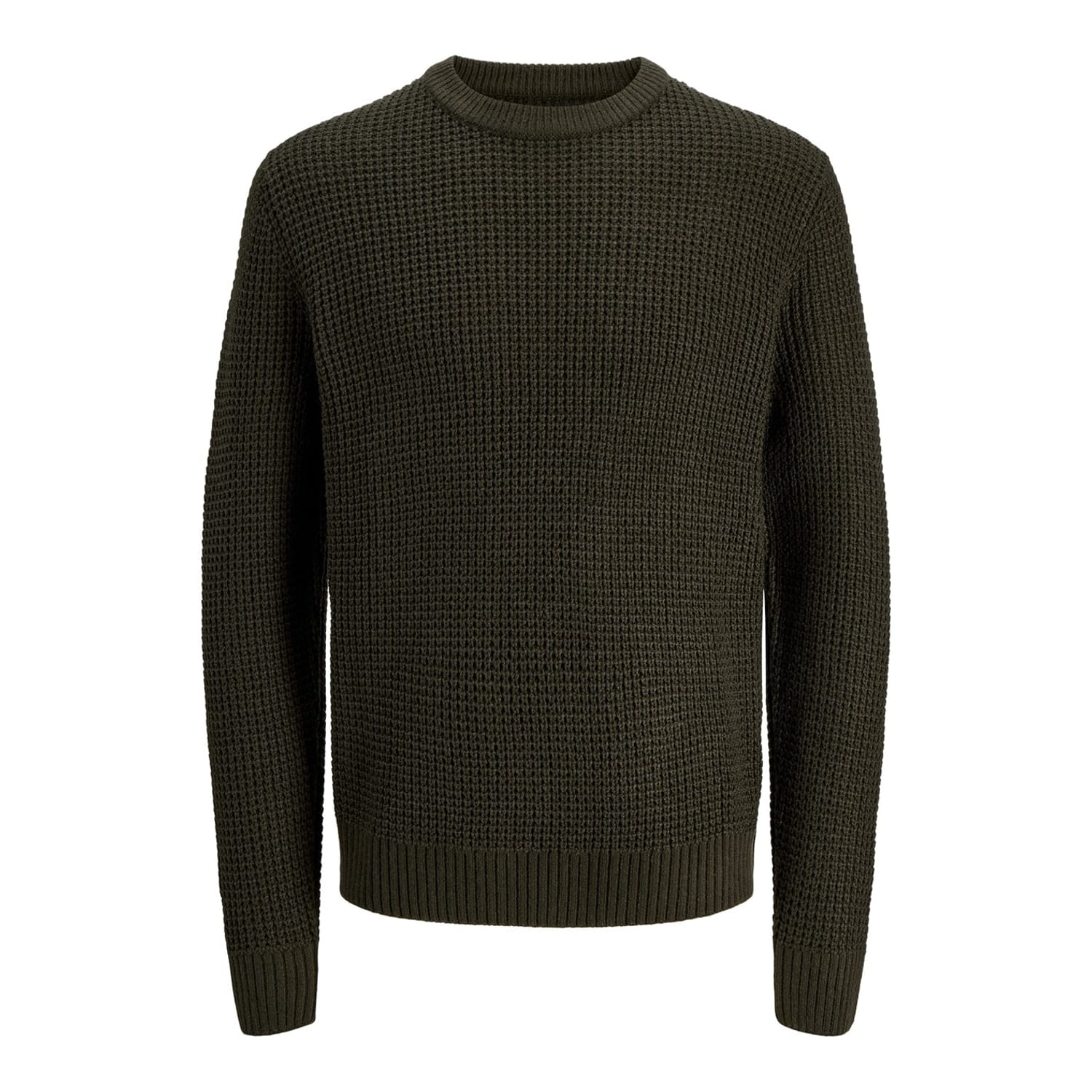 This Jack & Jones top is crafted for winter with a textured knit design. Featuring a crew neck and long sleeves, it offers a regular fit for comfortable wear. The ribbed collar and cuffs add a touch of detail to this essential piece. -