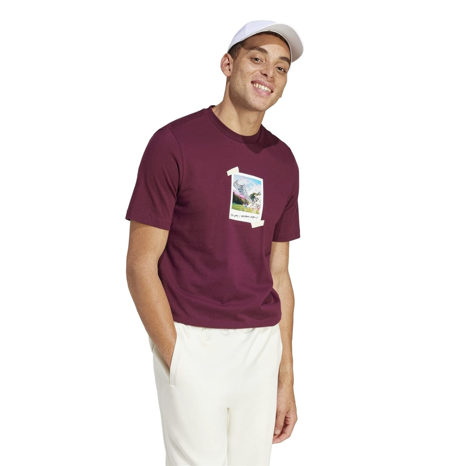 This adidas top is a staple for casual collections, featuring a regular fit and short sleeves. The crew neck design is complemented by a graphic print and a logo embellishment, adding a touch of brand identity. -