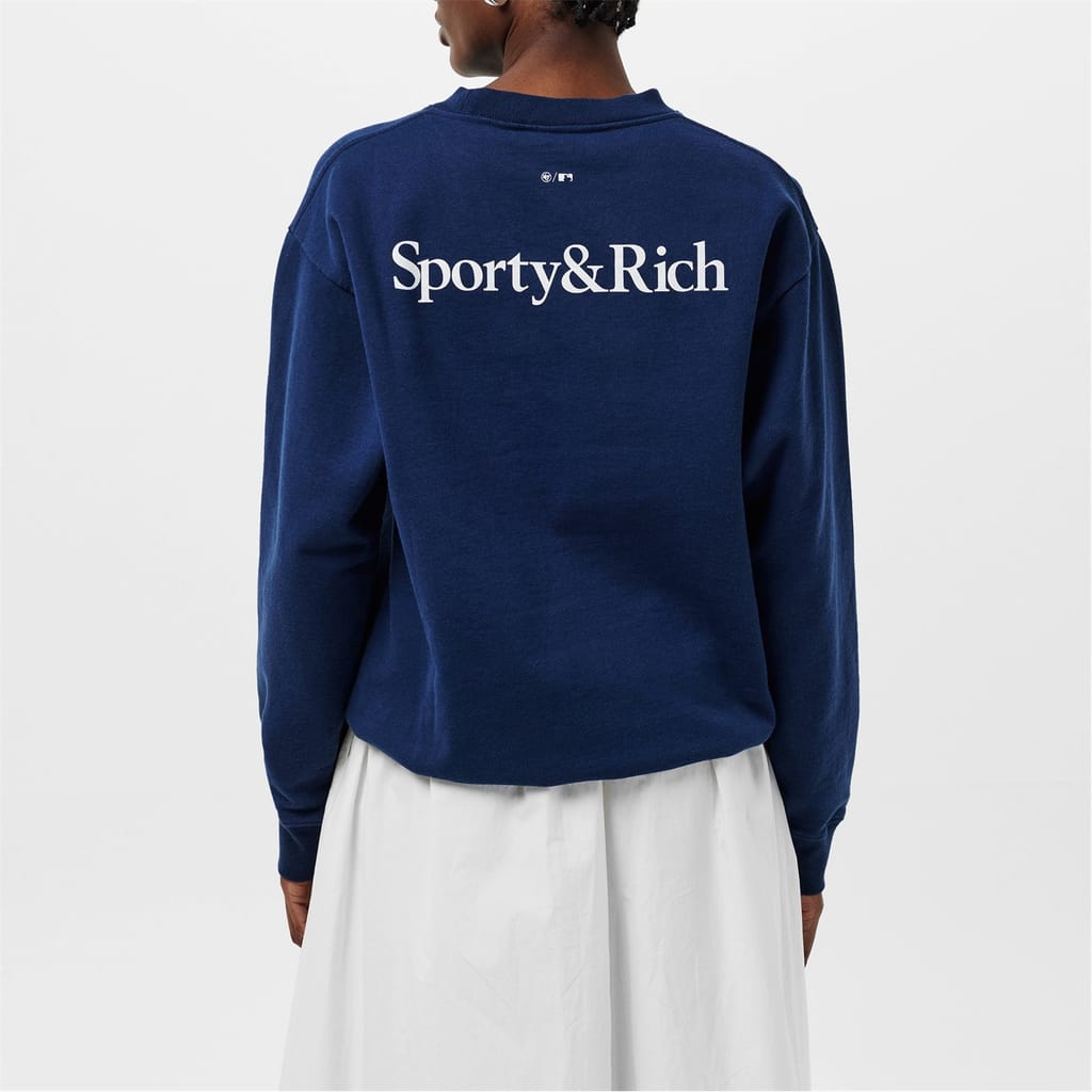 This Sporty & Rich top features a graphic print with a prominent logo, adding a stylish touch to your casual wardrobe. Designed with a crew neck and long sleeves, it offers a relaxed fit for comfort. The ribbed cuffs enhance the overall look, making it a versatile choice for sporting activities. -