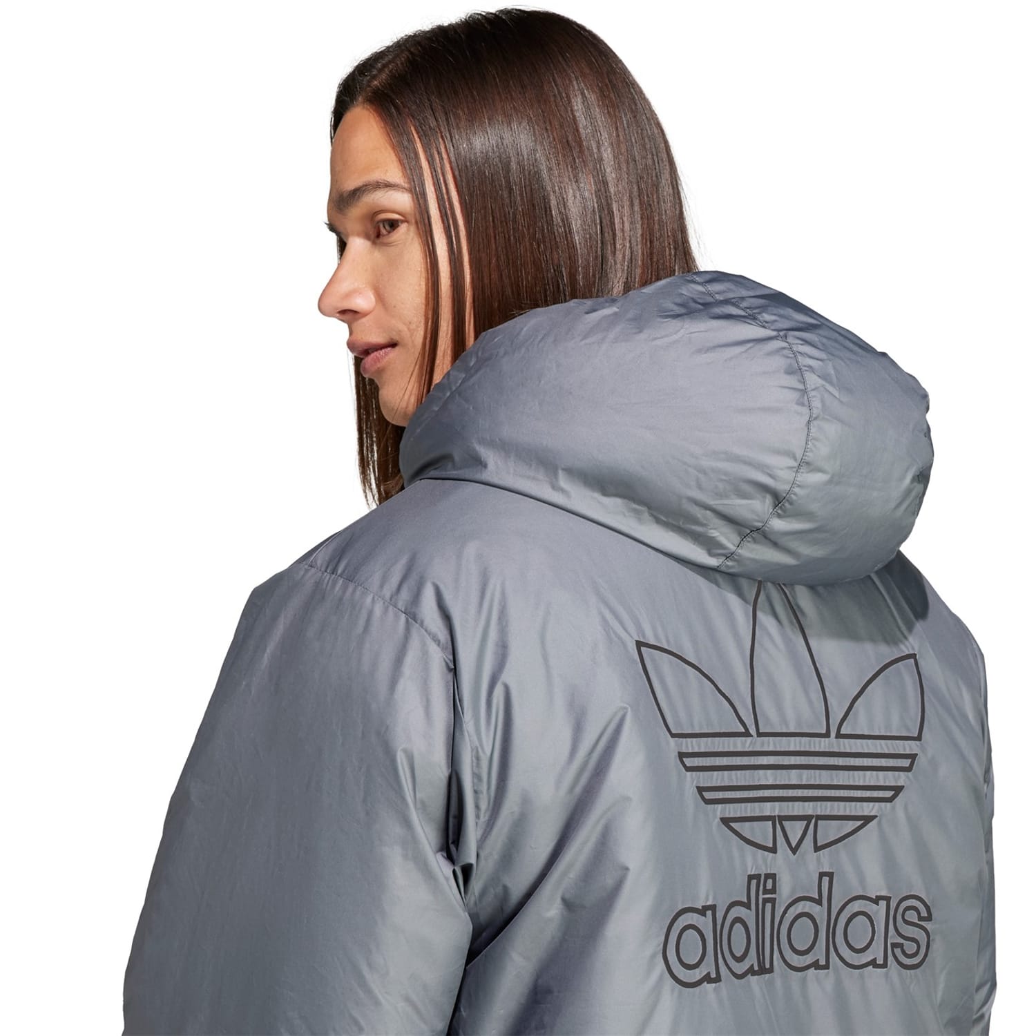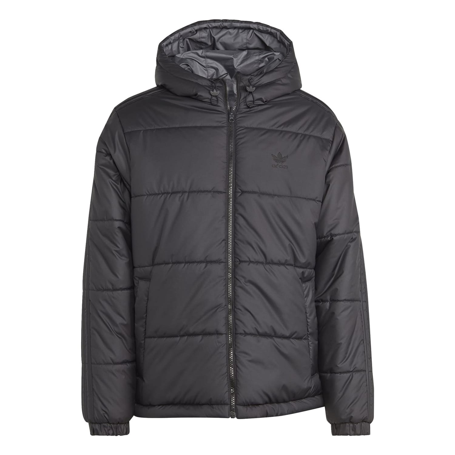 This adidas Originals puffer jacket is designed for comfort and style. Featuring a hooded neckline and a zipper closure, it offers a regular fit with a lightweight feel. The jacket includes an elasticated cuff and a straight hem, complemented by a solid pattern and a logo embellishment for a classic look. -