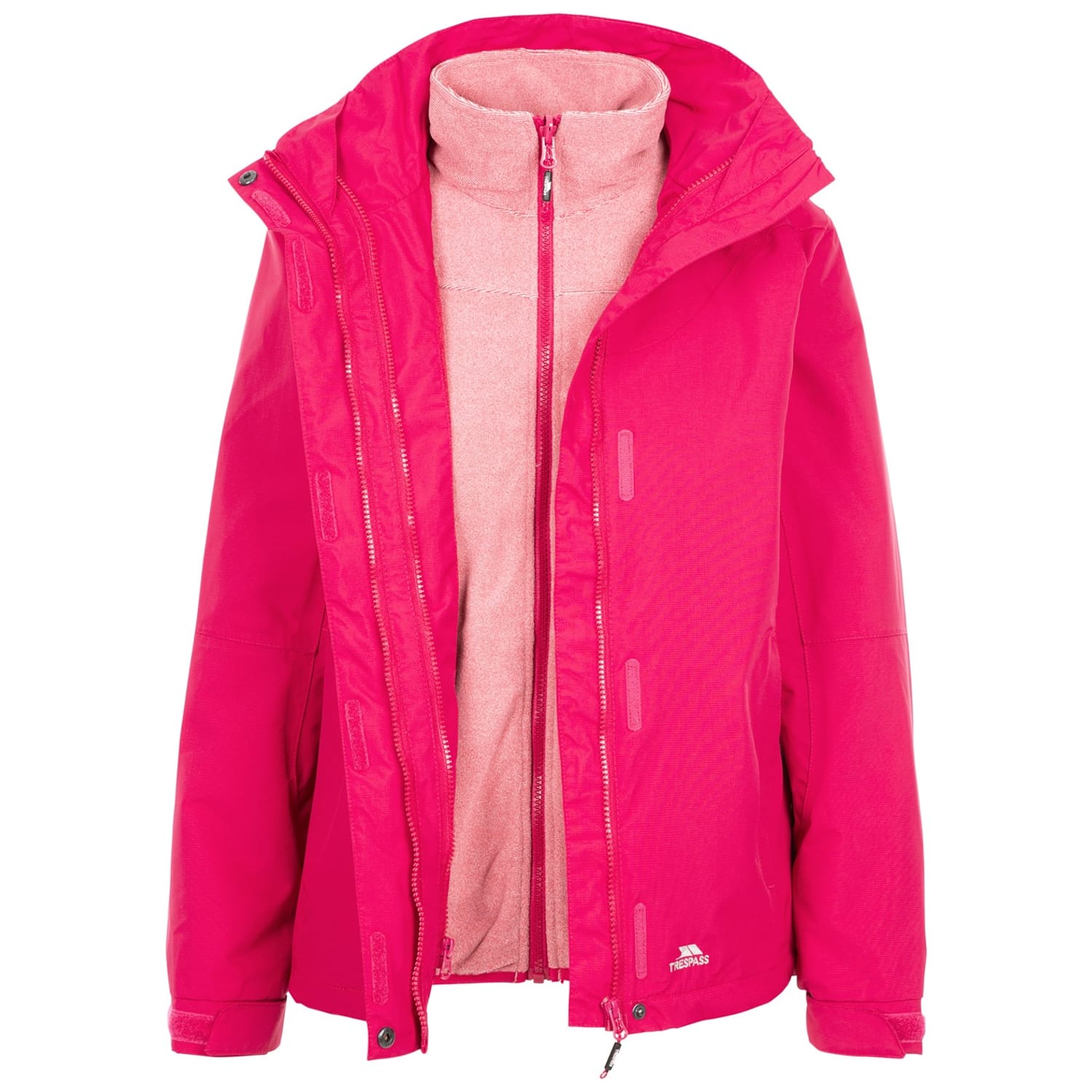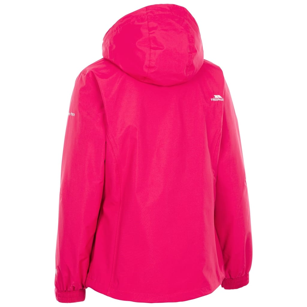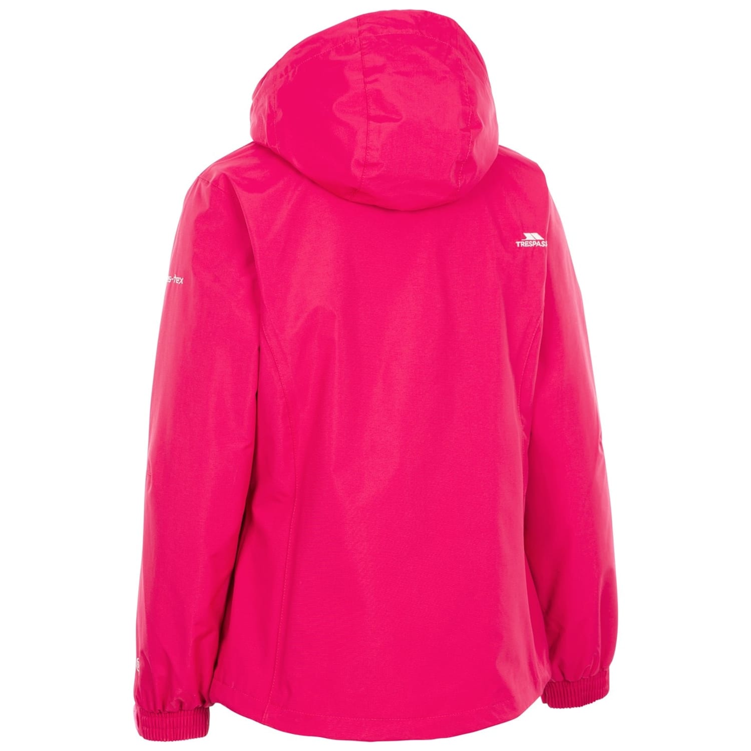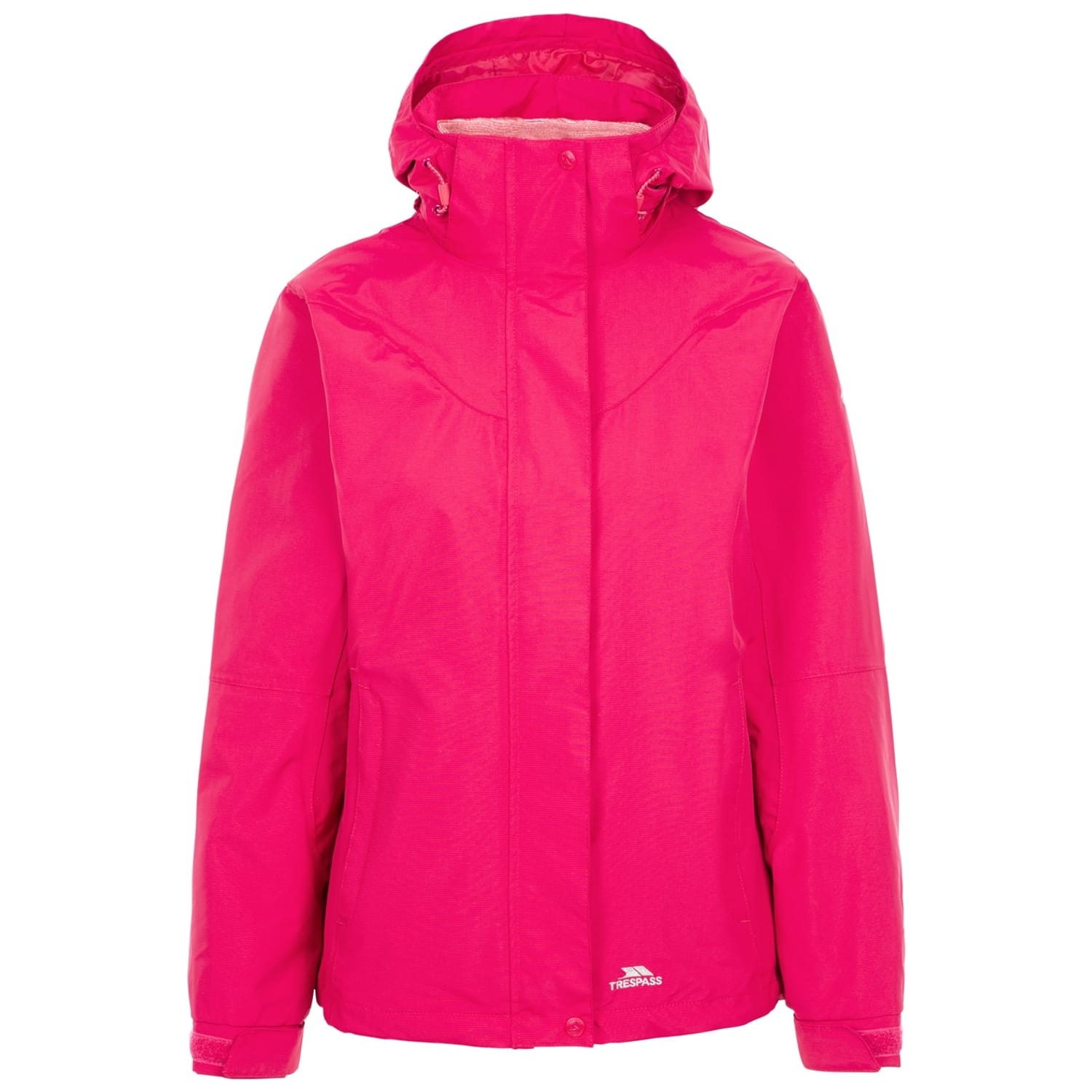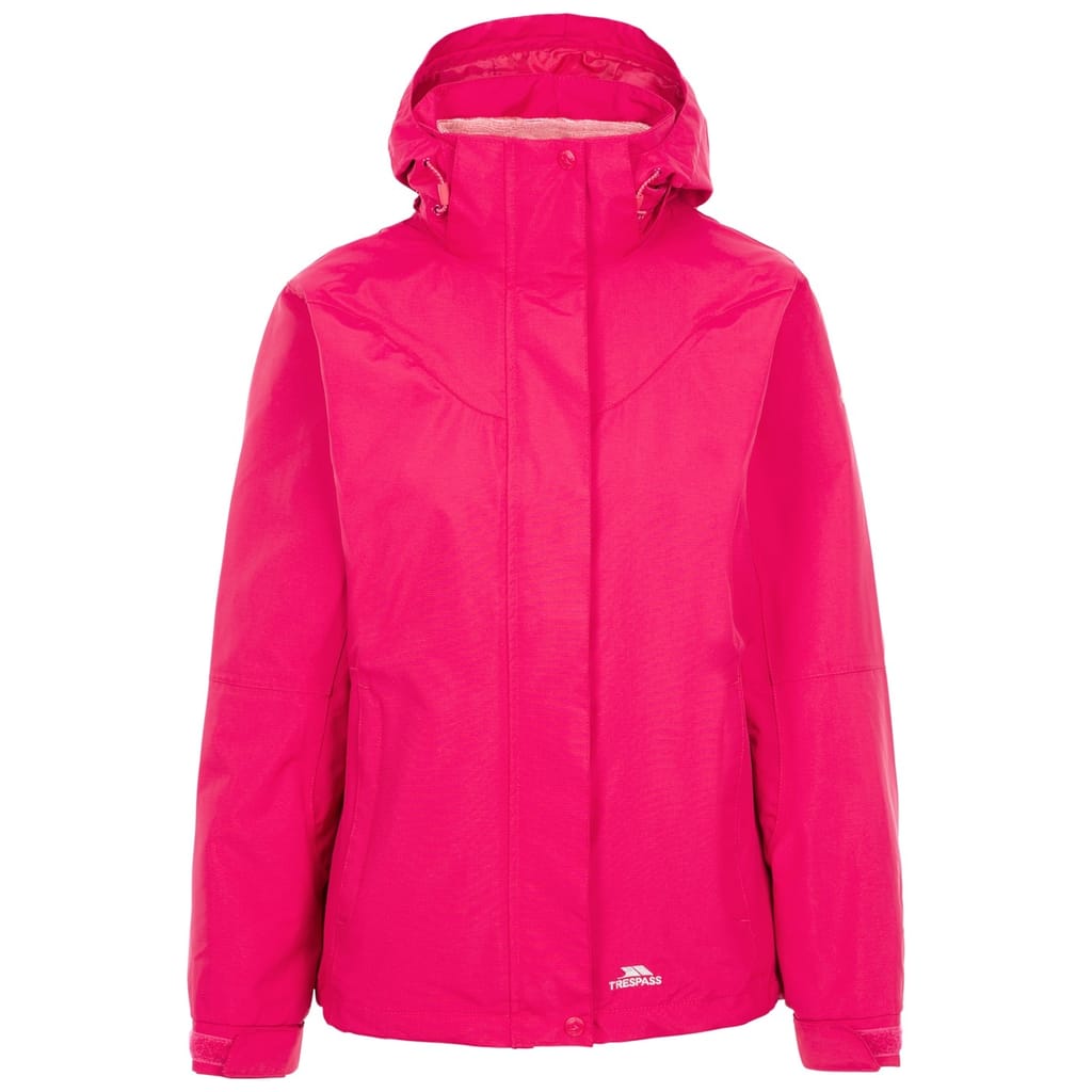 The Trespass jacket is designed for practicality and comfort. Featuring a hooded design, it offers insulation to keep you warm. The jacket has a relaxed fit with a straight hem and elasticated cuffs for added comfort. It includes a zipper closure with snap fastenings for secure wear. The solid pattern and logo embellishment add a touch of style to this functional piece. -