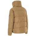 The Trespass insulated puffer jacket offers a relaxed fit and features a solid pattern. It includes a zipper closure and is adorned with a logo, providing both style and functionality. -