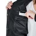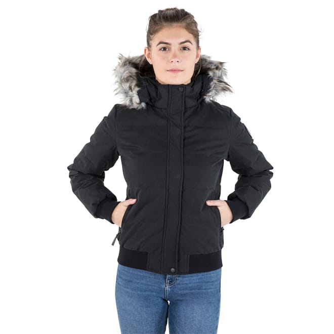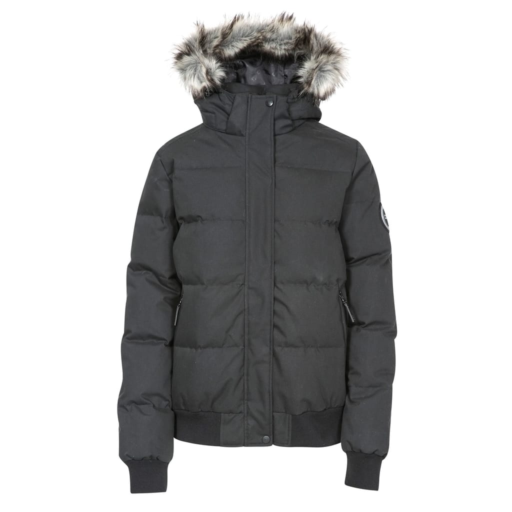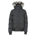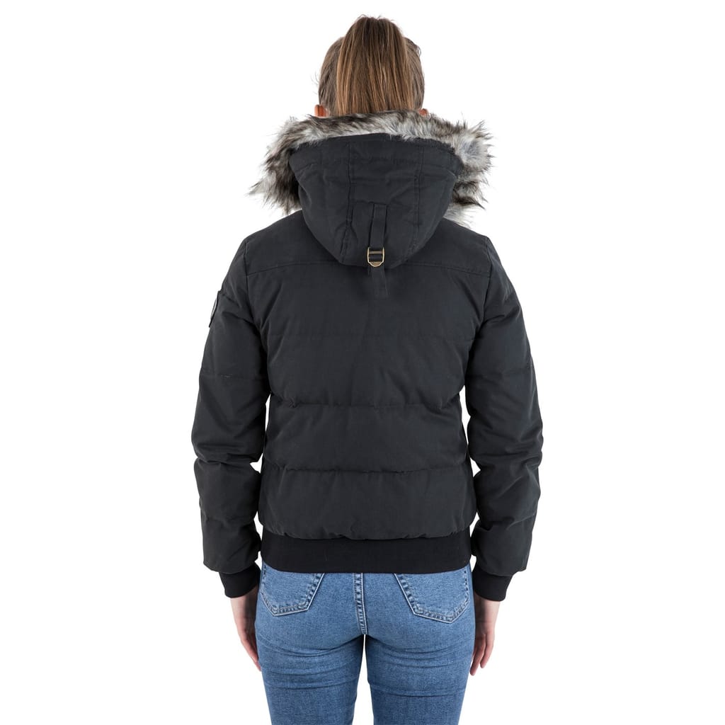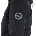 DLX down jacket features a hooded design with a regular fit, offering warmth and comfort. The jacket includes a zipper and snap closure, complemented by ribbed cuffs and hem for a snug fit. Embellished with a logo, it also provides practical pockets and an inner pocket. The solid pattern and short length make it a versatile addition to your wardrobe. -