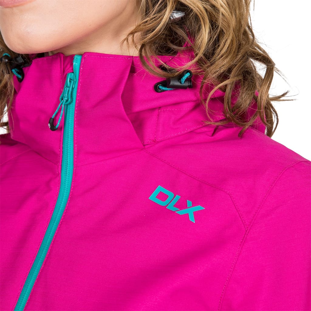 The DLX jacket is designed for practicality and style, featuring a hooded neckline and a water-repellent finish. It offers a regular fit with a straight hem and elasticated cuffs for comfort. The jacket includes a zipper closure with an adjustable drawstring, and is adorned with a logo. Solid in pattern, it also features practical pockets, including zipped options, for added convenience. -