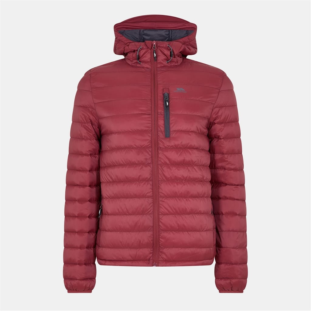 Stay warm with the Trespass down jacket, featuring a hooded neck and a convenient zipper closure. This regular fit jacket is designed with a straight hem and showcases a solid pattern. The jacket is embellished with a logo, adding a touch of brand identity to its practical design. -