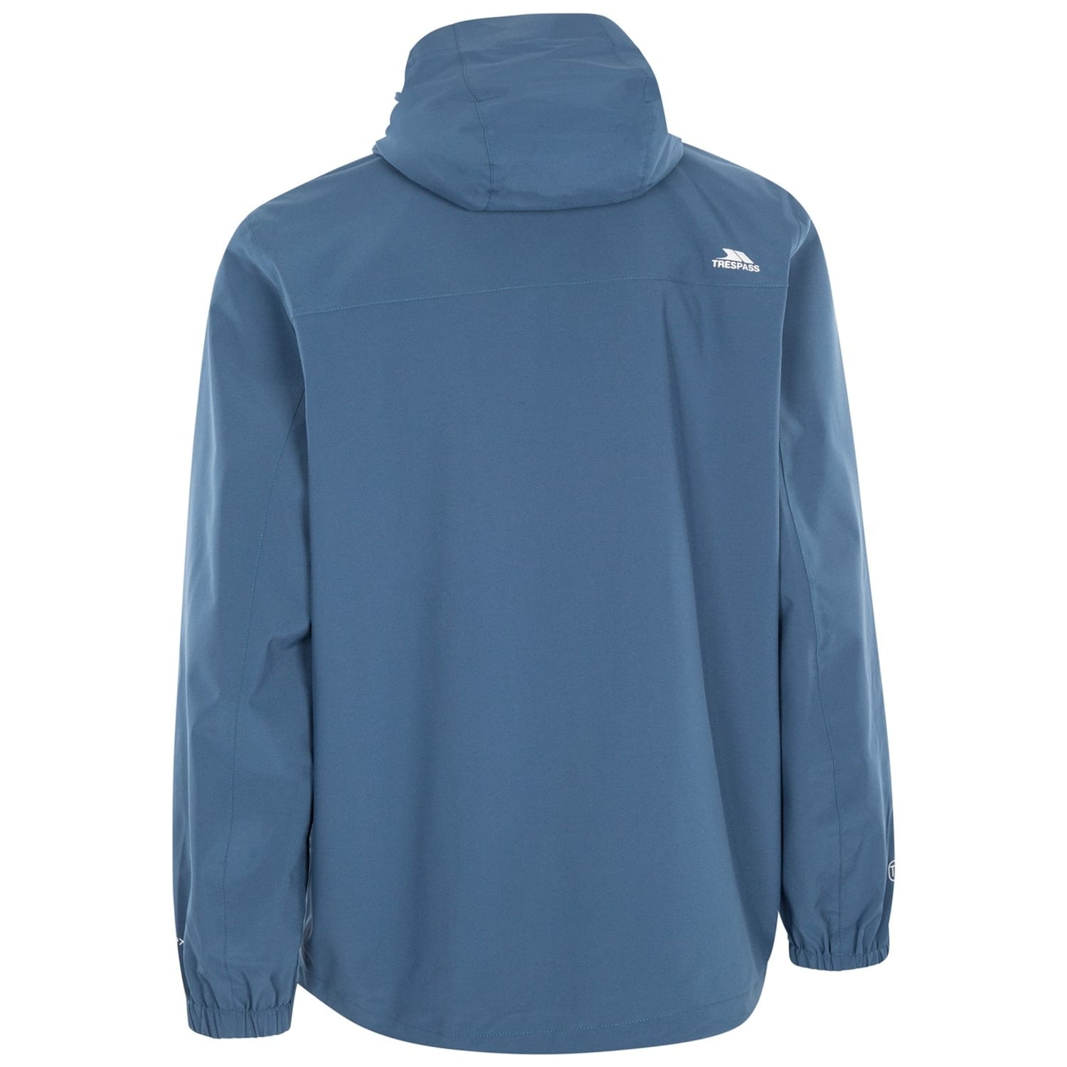 Trespass hooded jacket features a water-repellent design, perfect for rainy days. It has a regular fit with a straight hem and elasticated cuffs. The jacket includes a zipper and snap button closure, along with practical zipped pockets. The solid pattern is complemented by a subtle logo embellishment, offering both style and functionality. -