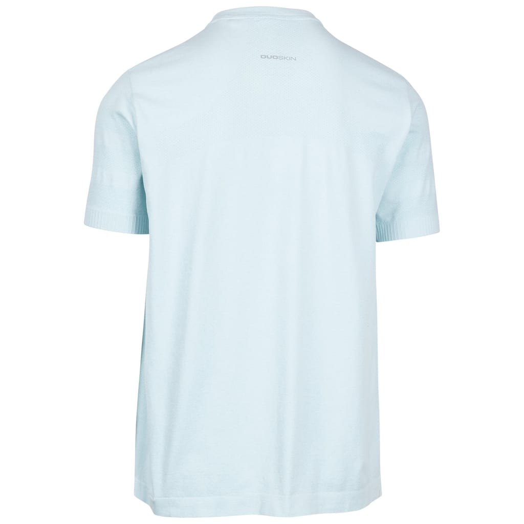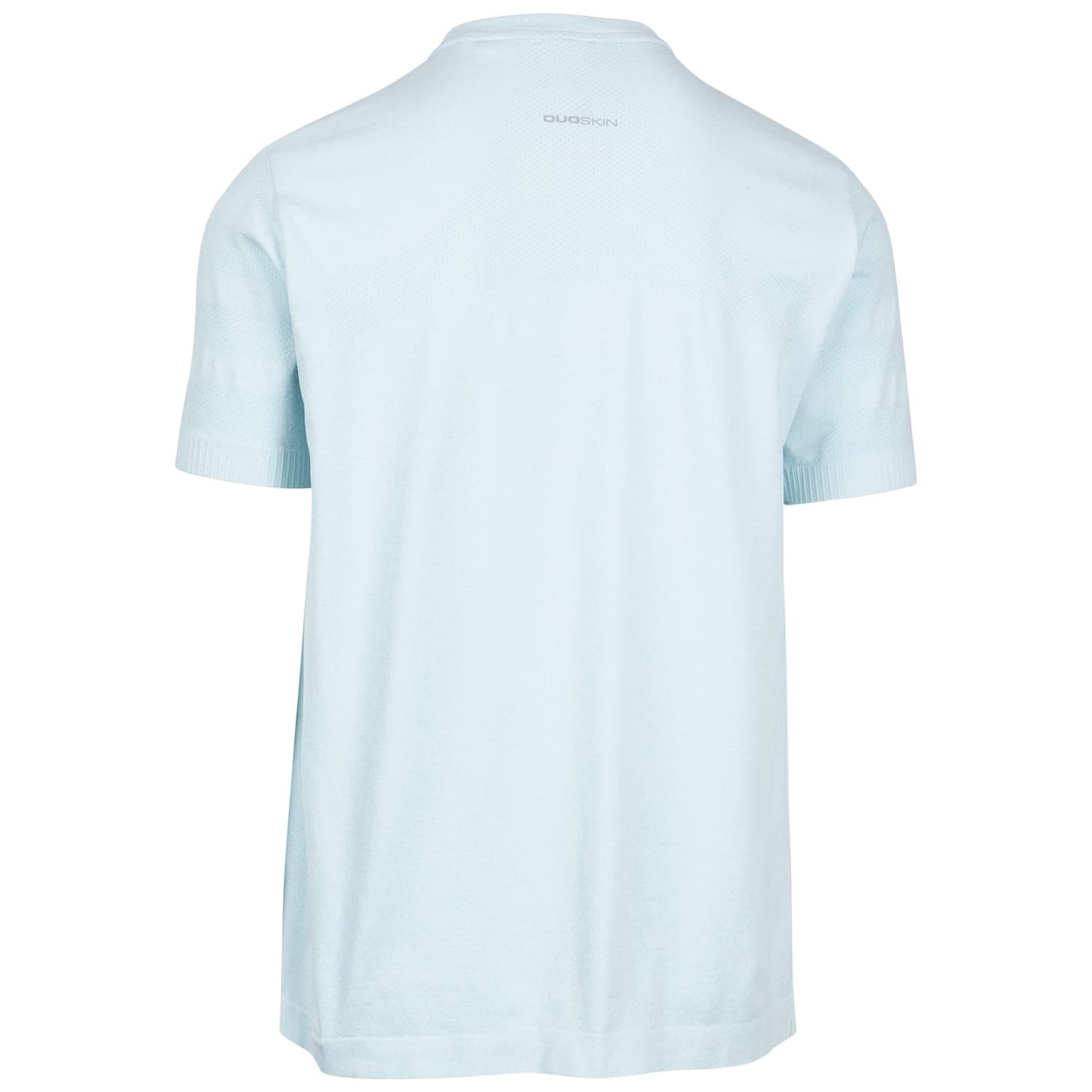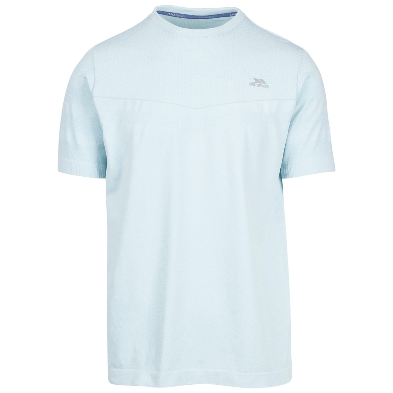 This Trespass top is designed for performance with a solid pattern and short sleeves. It features a crew neck and a regular fit, complemented by ribbed cuffs and collar. The top is adorned with a logo, adding a subtle touch of branding. -