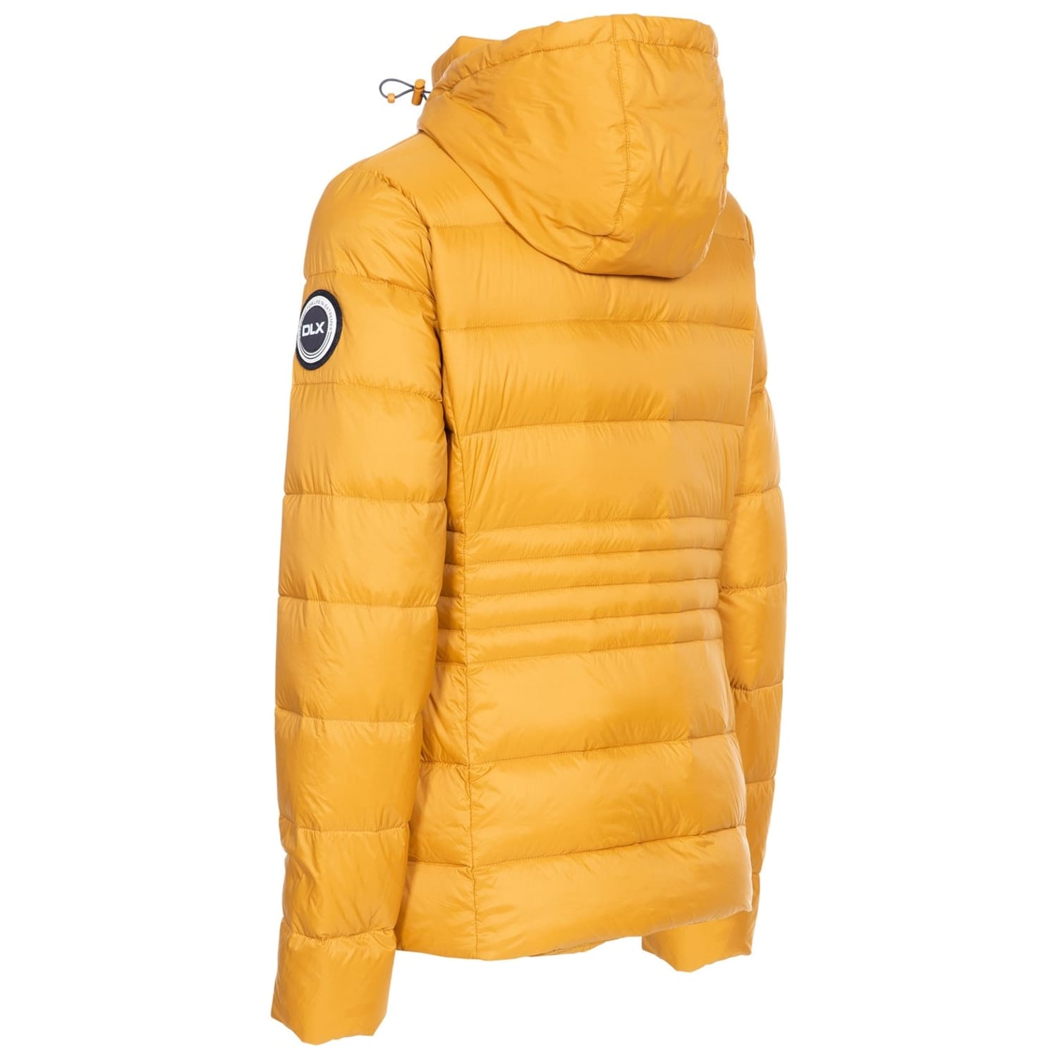 The DLX down jacket offers a regular fit with a straight hem and a convenient zipper closure. Featuring a horizontal stripe pattern, this jacket is designed with practical pockets and a subtle logo embellishment. Crafted with down material, it provides warmth and comfort for cooler seasons. -