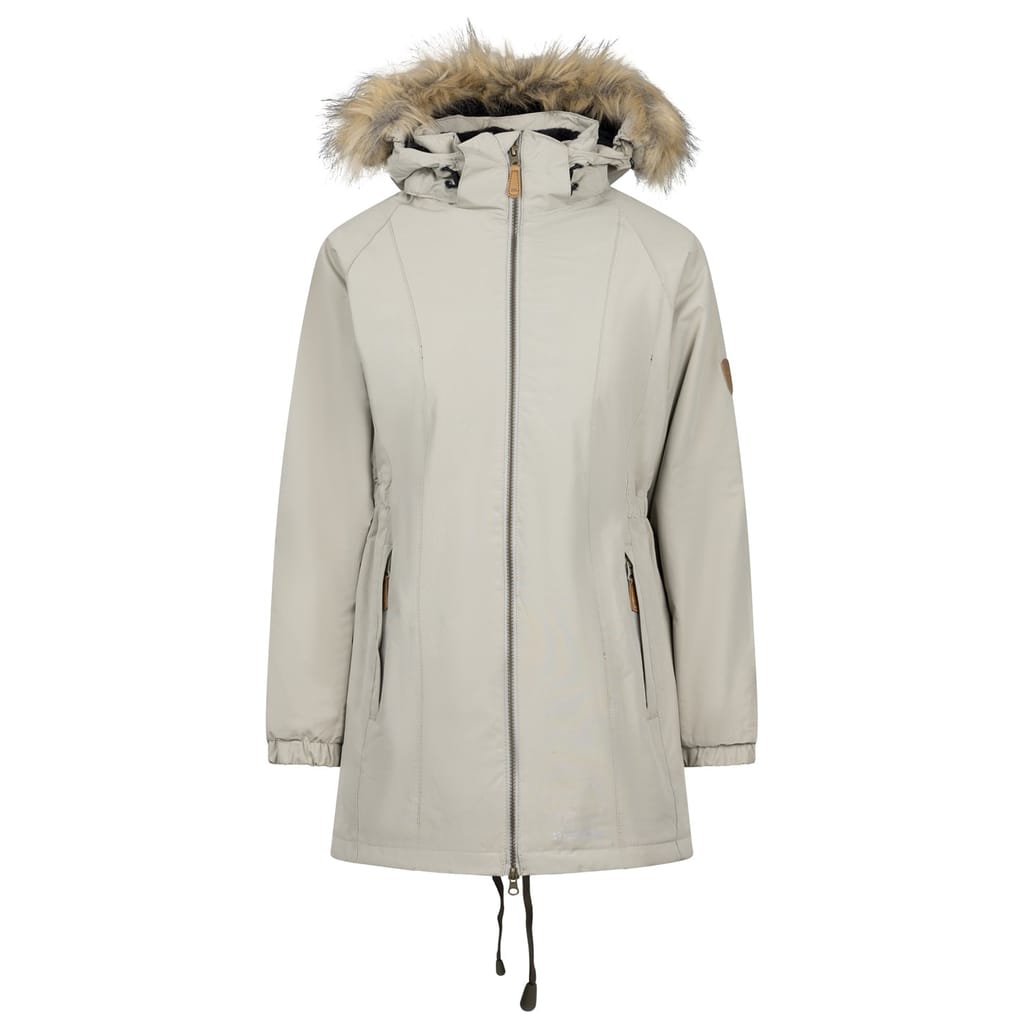 Stay warm this winter with the Trespass parka. Designed for both sport and casual collections, this jacket features a hooded neckline and a relaxed fit. The raglan sleeves with elasticated cuffs ensure comfort, while the curved hem adds style. A zipper and drawstring closure provide practicality, and the solid pattern is complemented by logo embellishments and pockets for added functionality. -