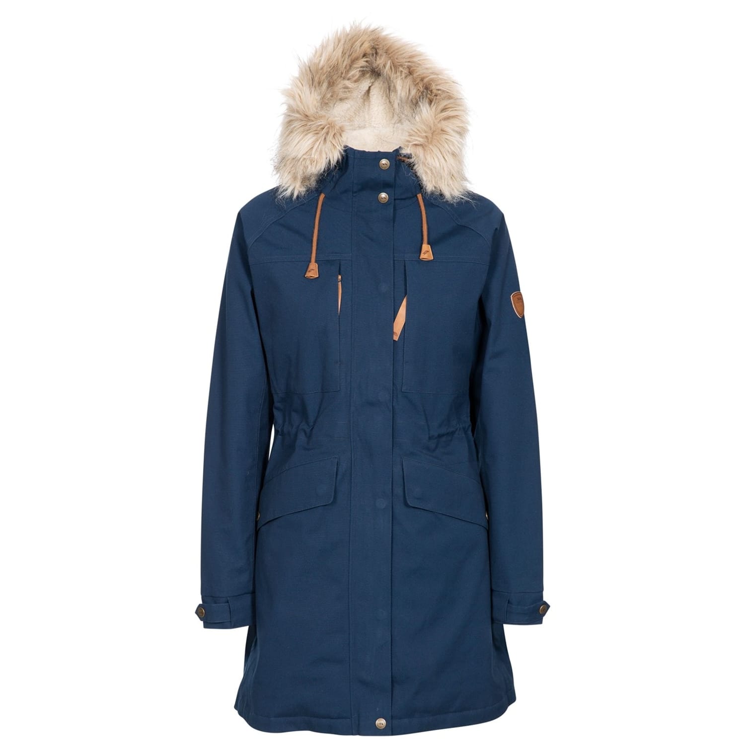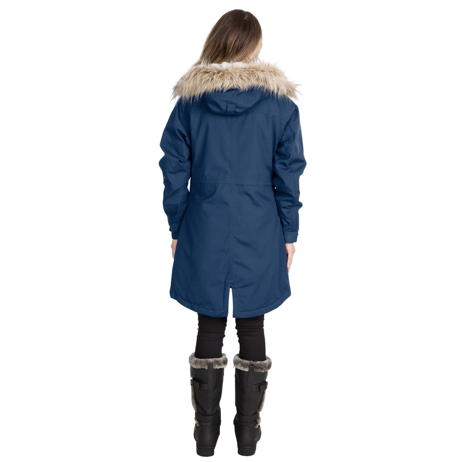 Trespass parka is designed for winter, offering a regular fit with a hooded neckline. It features a solid pattern and a straight hem. The jacket is equipped with a zipper closure and snap buttons, complemented by a logo, pockets, and a fur trim. Ideal for both sport and casual collections, this parka ensures warmth and style. -