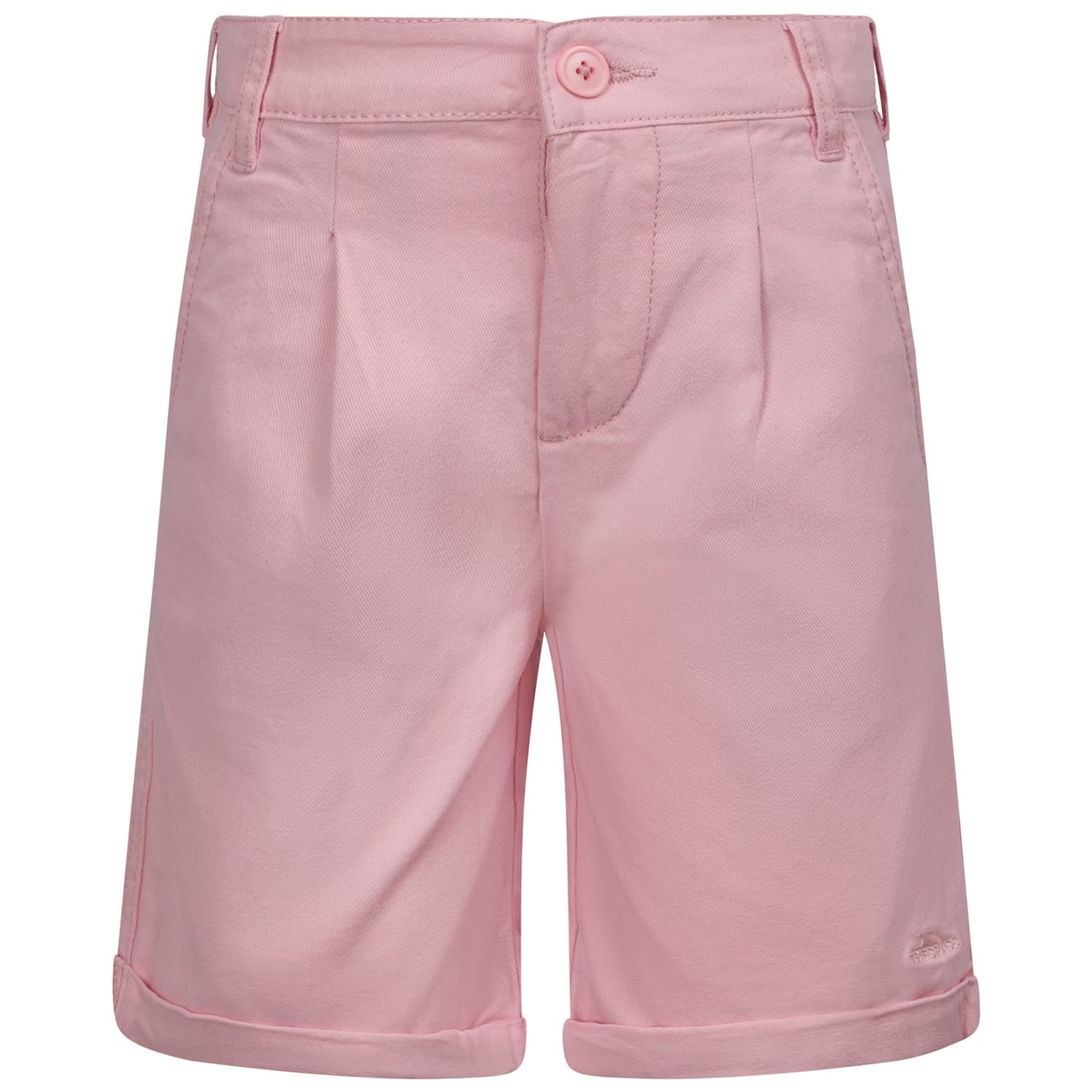 Trespass shorts feature a solid pattern and are crafted from woven material, offering a classic bermuda style. These chino shorts come with a button closure and are adorned with a subtle logo embellishment, making them a versatile addition to any casual collection. -