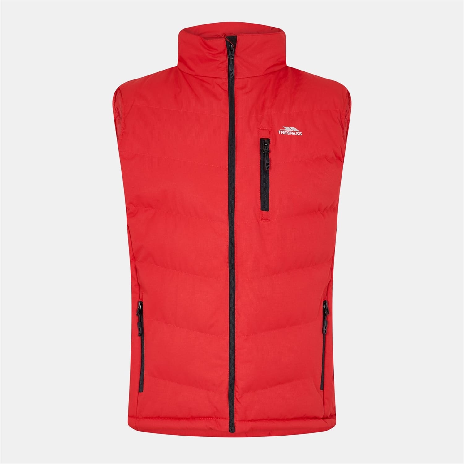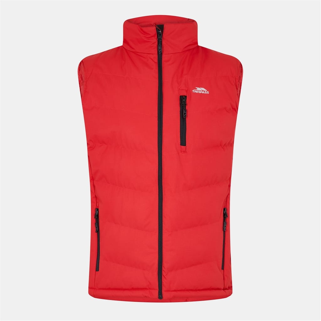 The Trespass gilet features a zip neck and a straight hem, offering a regular fit. This solid piece is designed with a zipper closure and includes practical zipped pockets. The gilet is adorned with a logo, adding a touch of brand identity to its sleek design. -