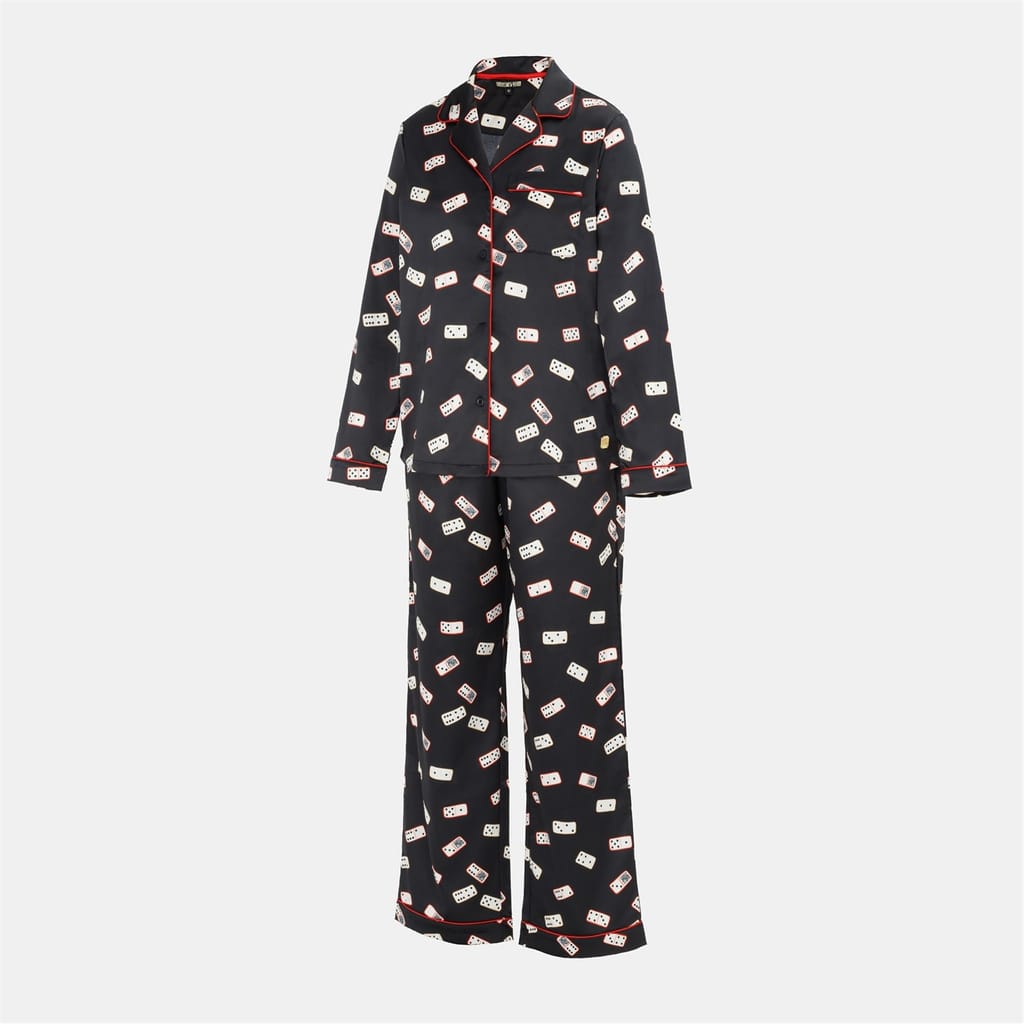 Discover Biba's sleepwear set, featuring a novelty pattern that adds a playful touch. This regular fit two-piece pyjama includes a button closure for ease and comfort. The set is adorned with practical pockets, contrast piping, and stitched details, enhancing its unique appeal. Perfect for a relaxed and stylish night in. -