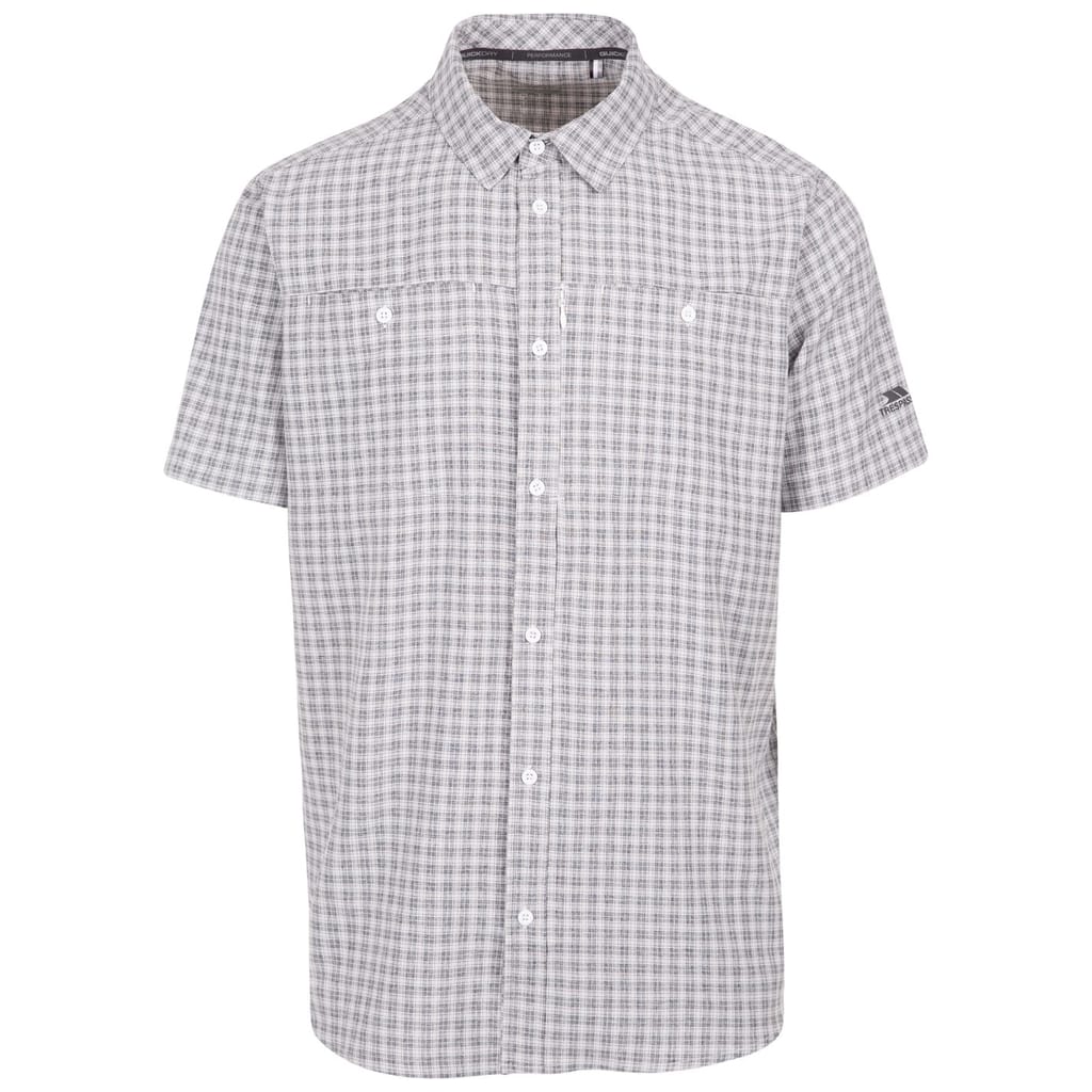 This Trespass top is perfect for summer with its short sleeves and regular fit. Featuring a classic shirt collar and a full button closure, it offers a timeless gingham pattern. The chest pocket adds a practical touch to this stylish piece. -