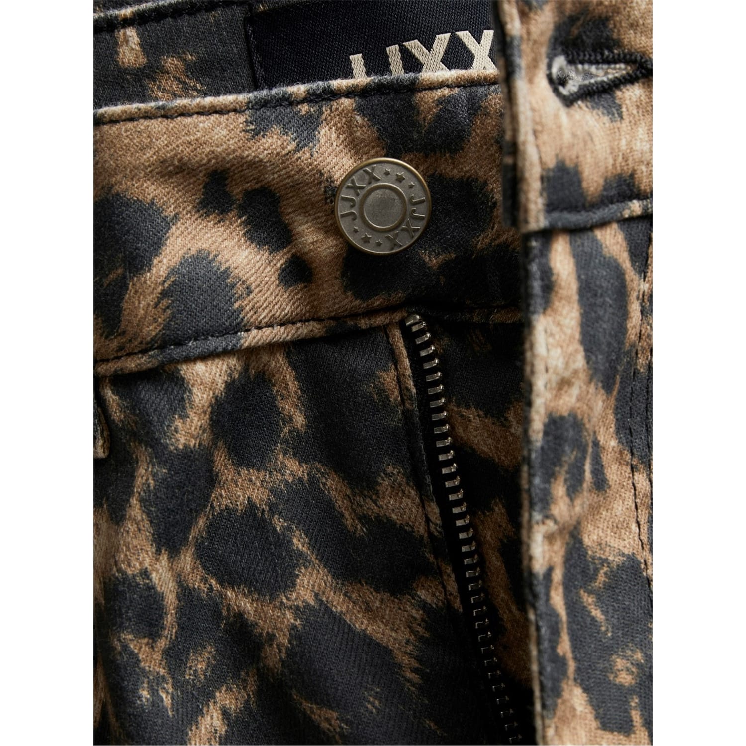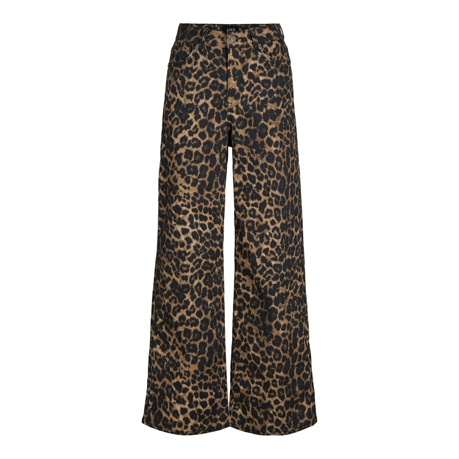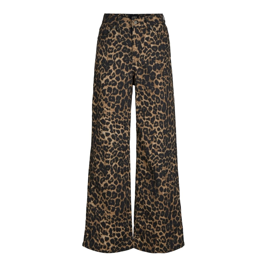 Embrace bold style with JJXX Tokyo wide-leg jeans, featuring a striking leopard pattern. These relaxed-fit jeans offer a comfortable and fashionable look, complete with a zip fly and button closure. The design is enhanced with a logo embellishment, adding a touch of brand identity to your wardrobe. -