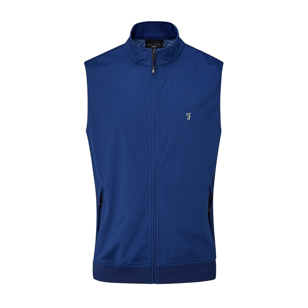 The Farah performance gilet is a versatile piece designed for functionality and style. Featuring a zip neck and a ribbed hem, this regular fit gilet offers a sleek silhouette. The solid pattern is complemented by a discreet logo embellishment, adding a touch of brand identity. Ideal for those seeking a practical yet stylish outerwear option. -