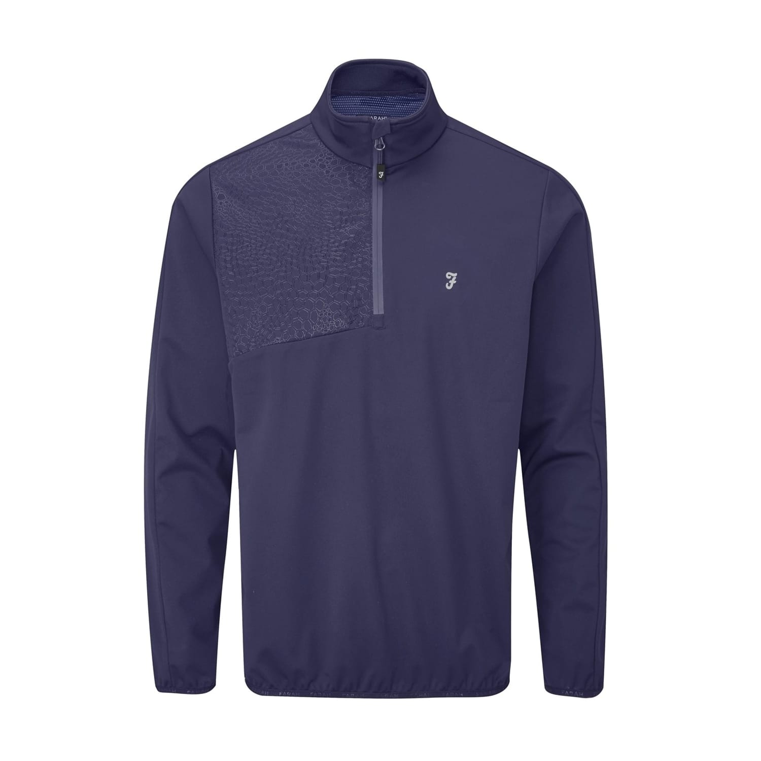 This Farah jacket features a mock neck and a zipper closure, offering a regular fit. The solid pattern and straight hemline provide a clean look, while the logo embellishment adds a touch of brand identity. -