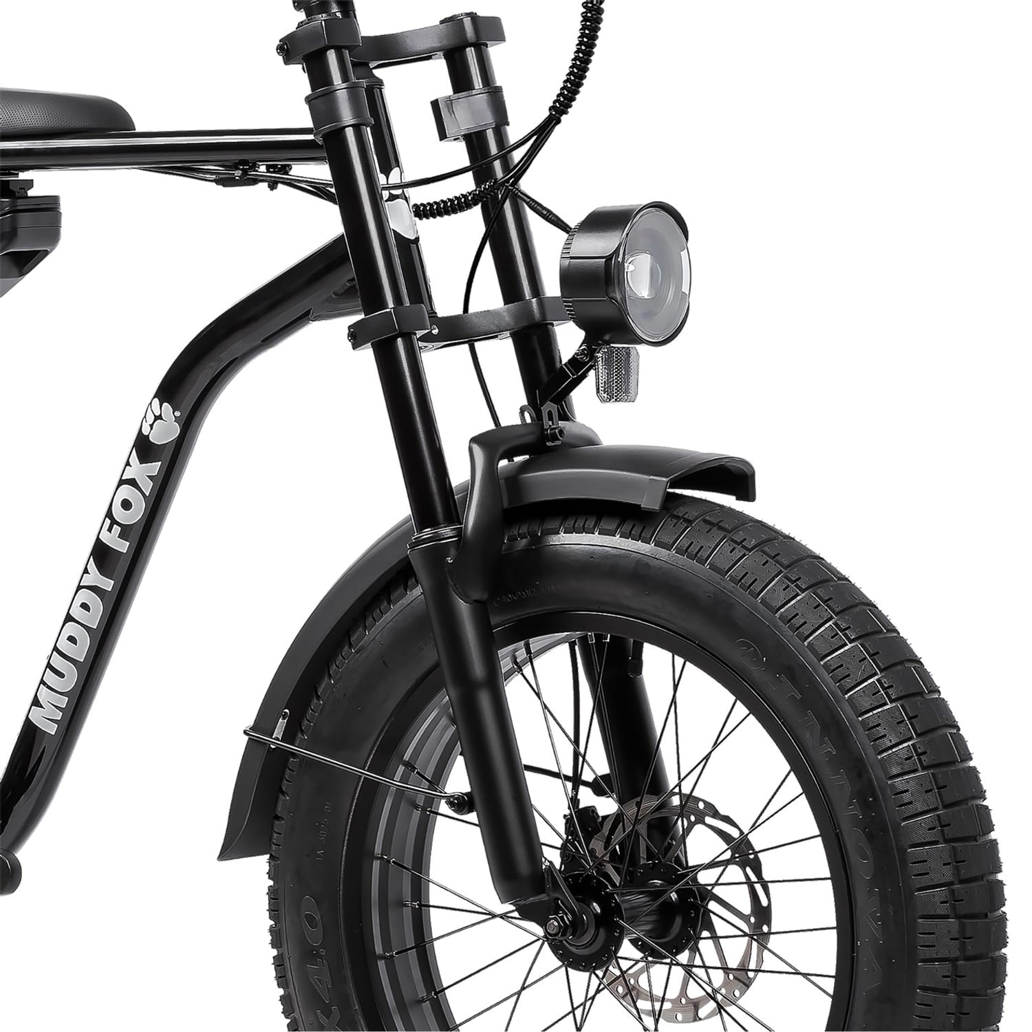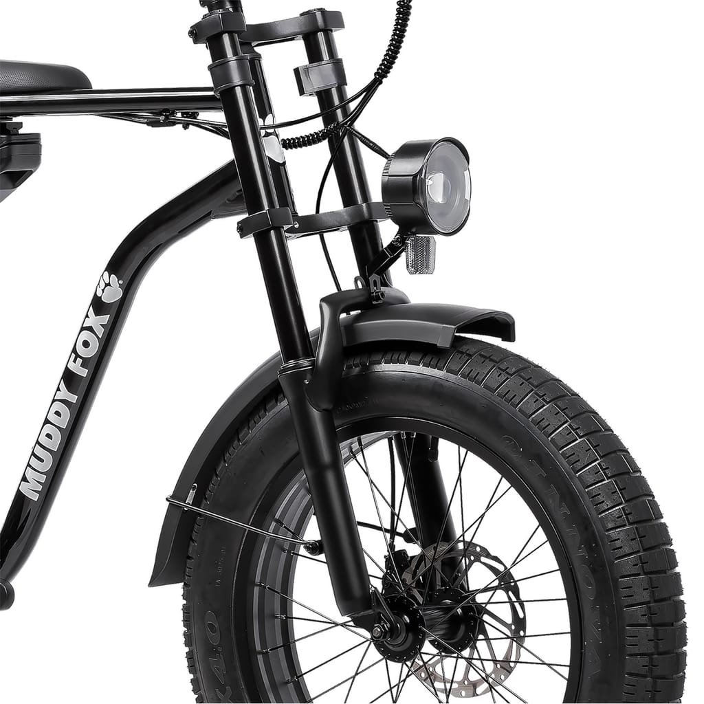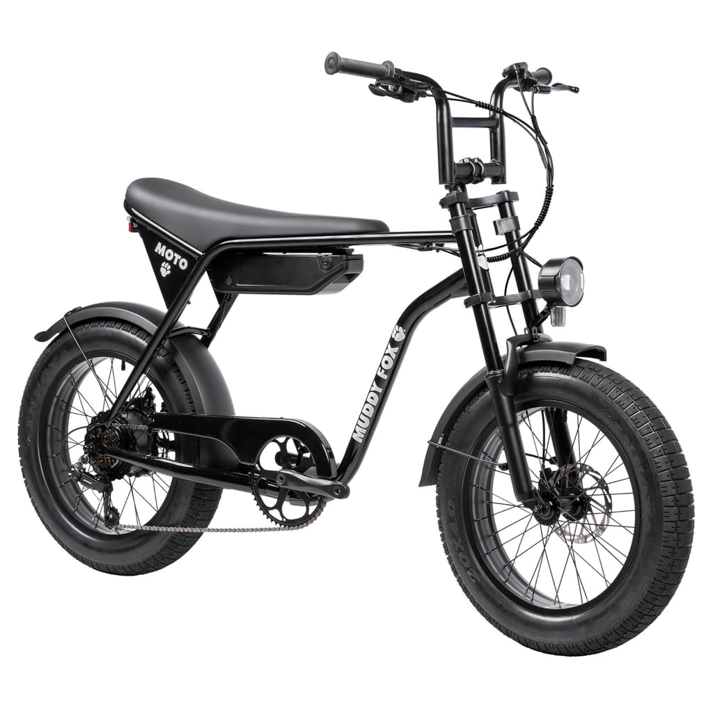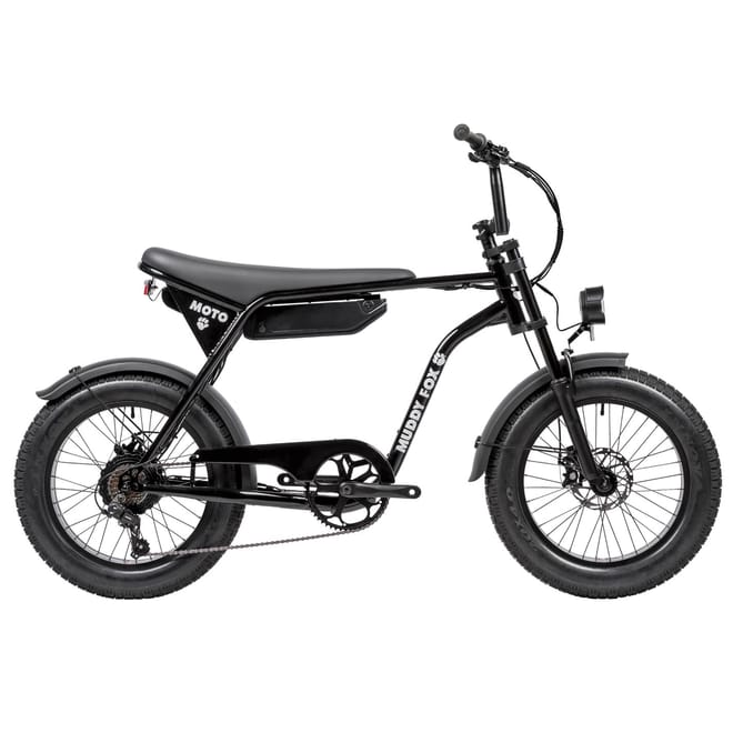- Rugged steel Moto style frame with mudguards and hidden battery.