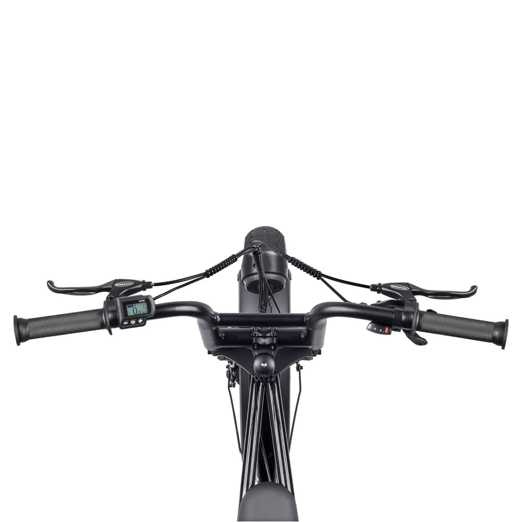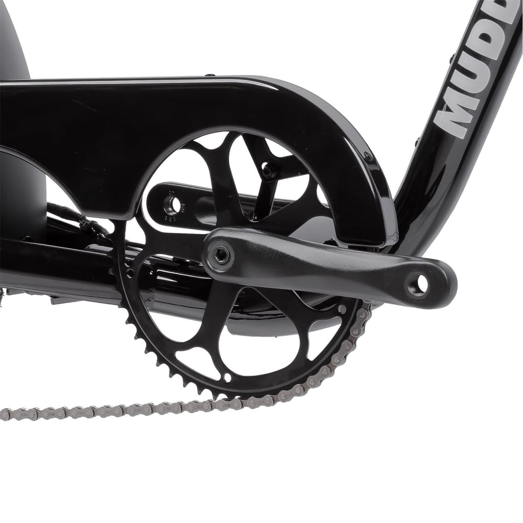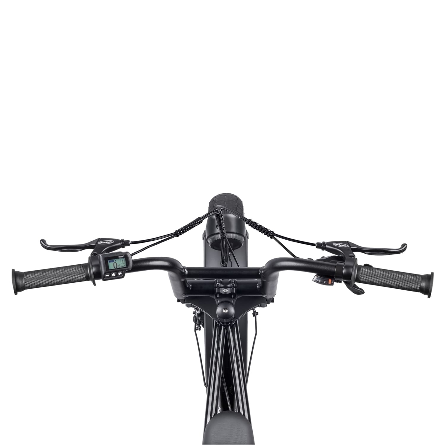 - Rugged steel Moto style frame with mudguards and hidden battery.