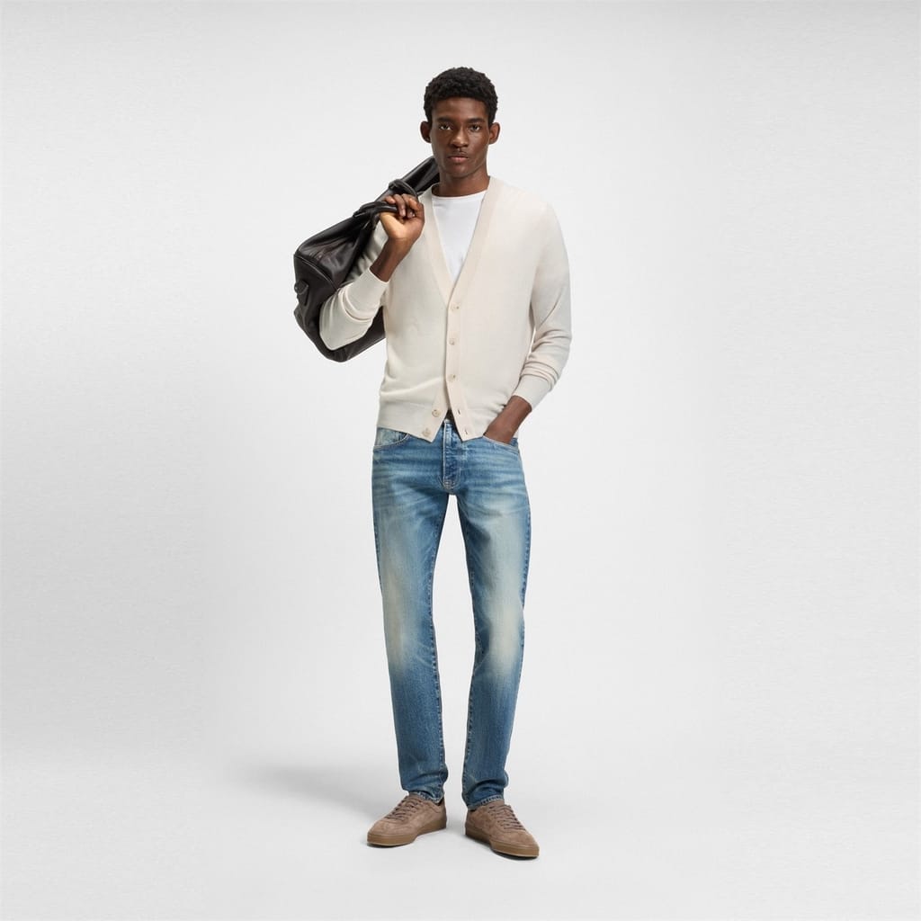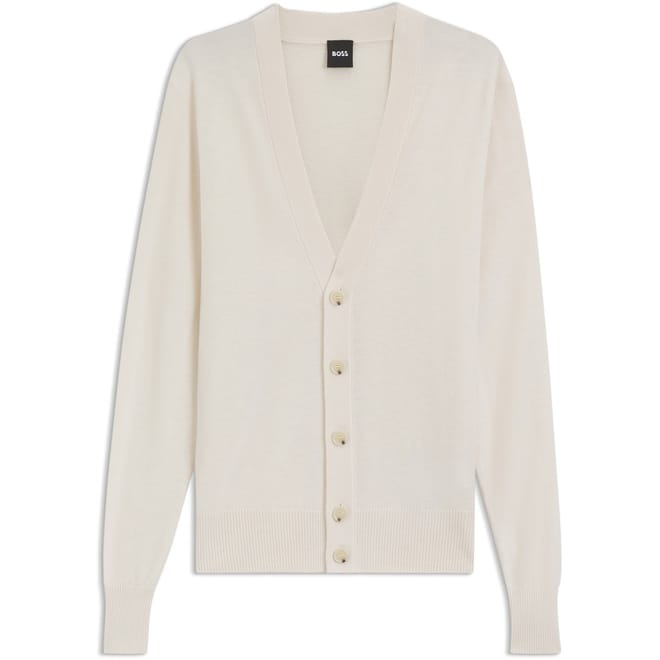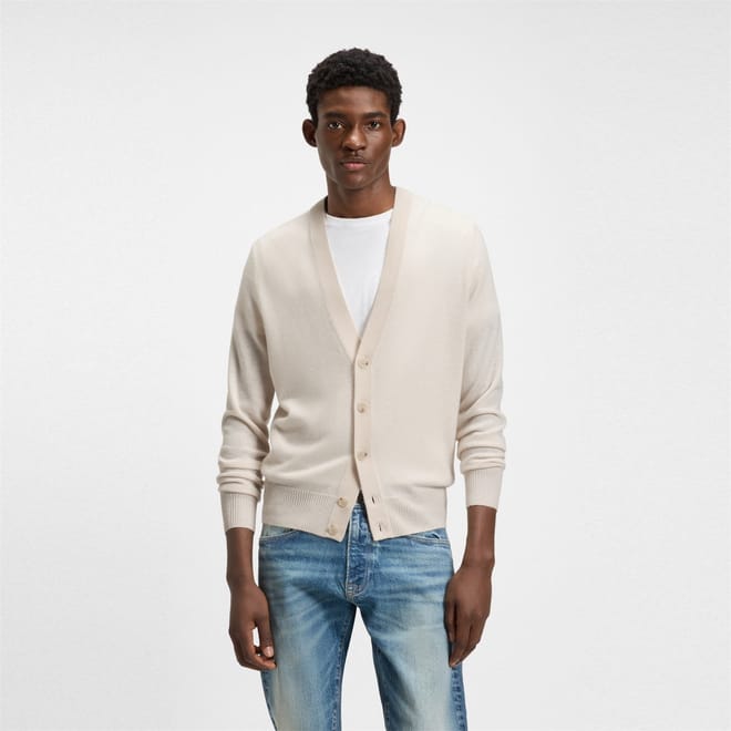 Elevate your everyday ensemble with the BECKHAM x BOSS Relaxed-Fit Cardigan - co-designed with David, incorporating timeless wardrobe staples and subtle statement pieces. Meticulously made in a classic hue, creating effortless styling all year round. From casual days to weekend occasions, this knit cardigan is a wardrobe staple.