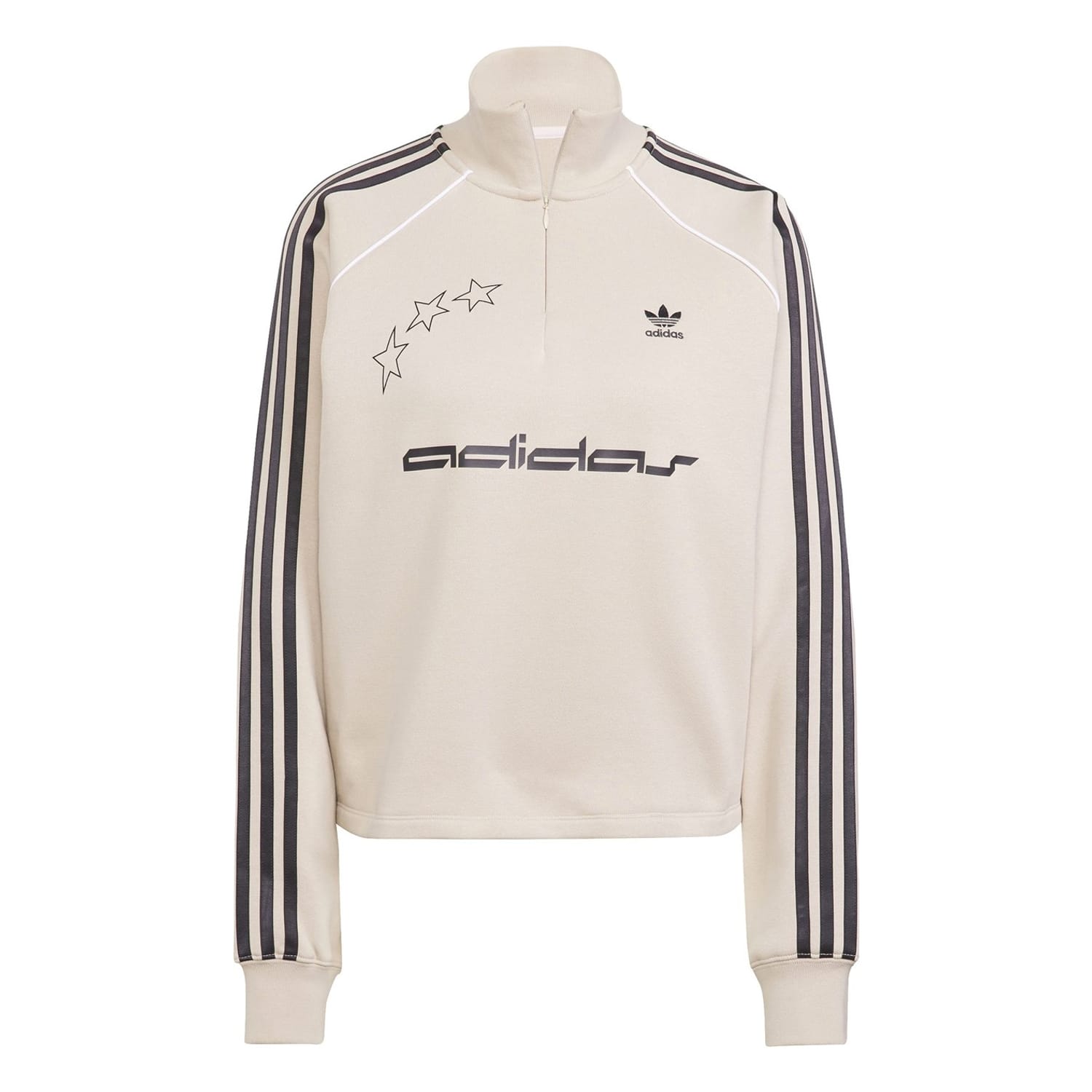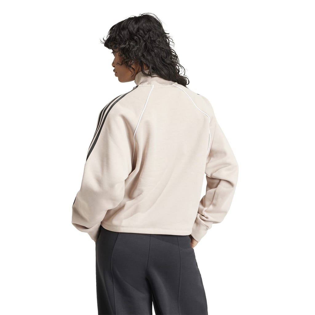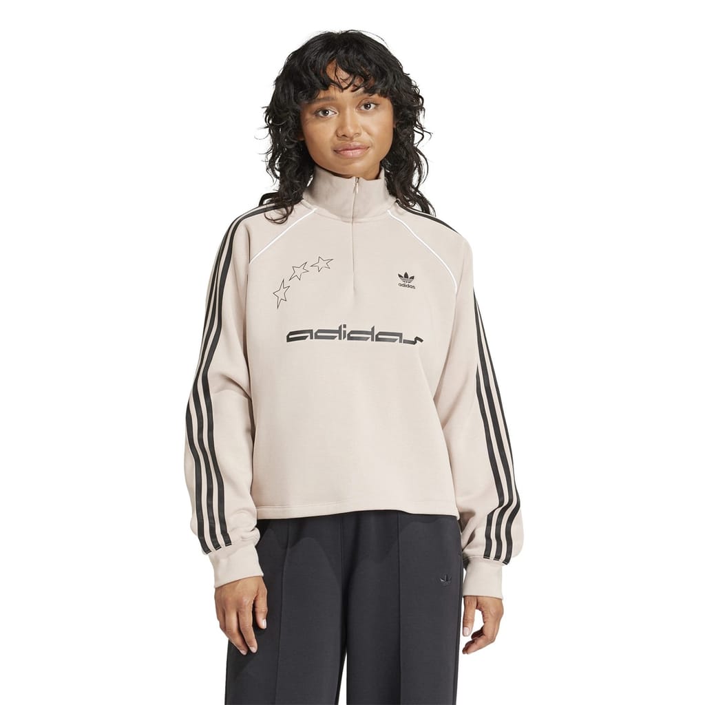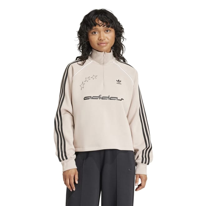 This adidas Originals top features a relaxed fit with a zip neck and long raglan sleeves. The solid pattern is complemented by a half zipper closure and ribbed cuffs. Embellished with a logo and pocket, this top combines style and functionality. -