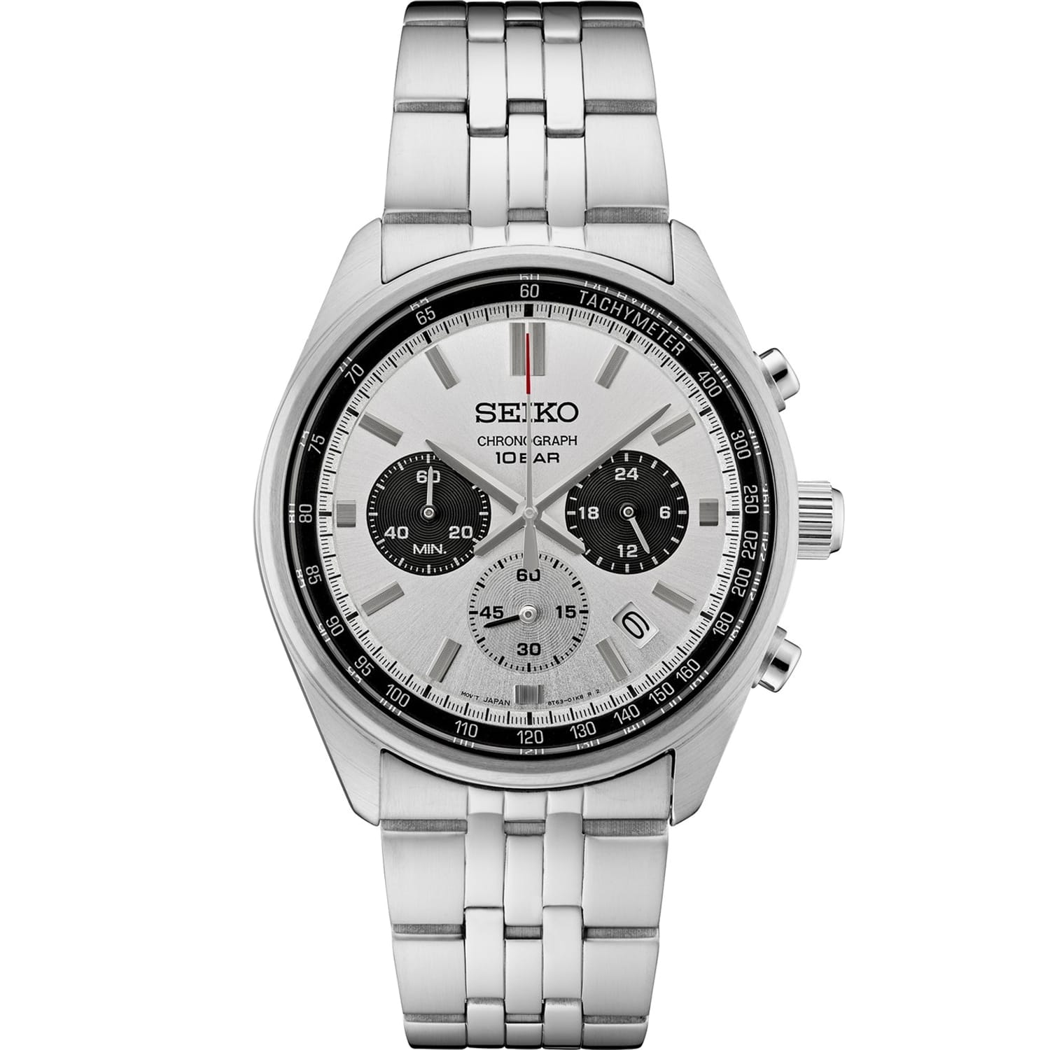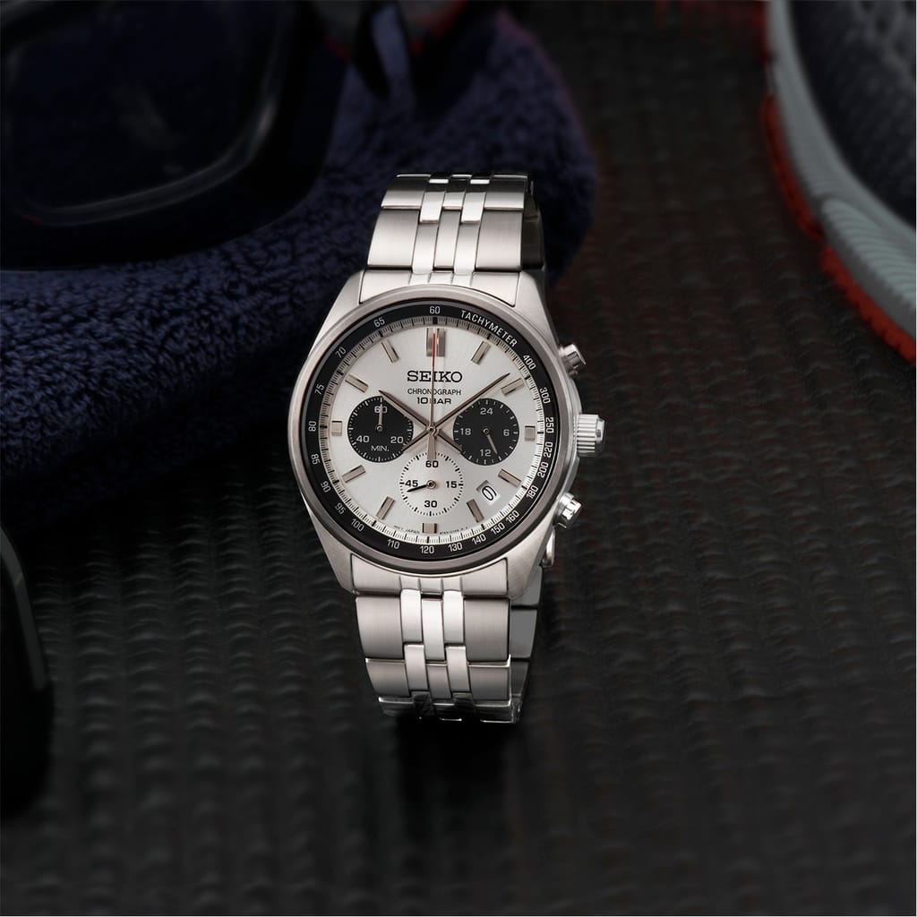 Seiko wrist watch featuring a classic analogue display and a sleek white dial. This timepiece is crafted with a durable steel bracelet strap, ensuring both style and comfort. With a water resistance of up to 100m, it is perfect for everyday use and occasional water exposure. A timeless addition to any collection. -