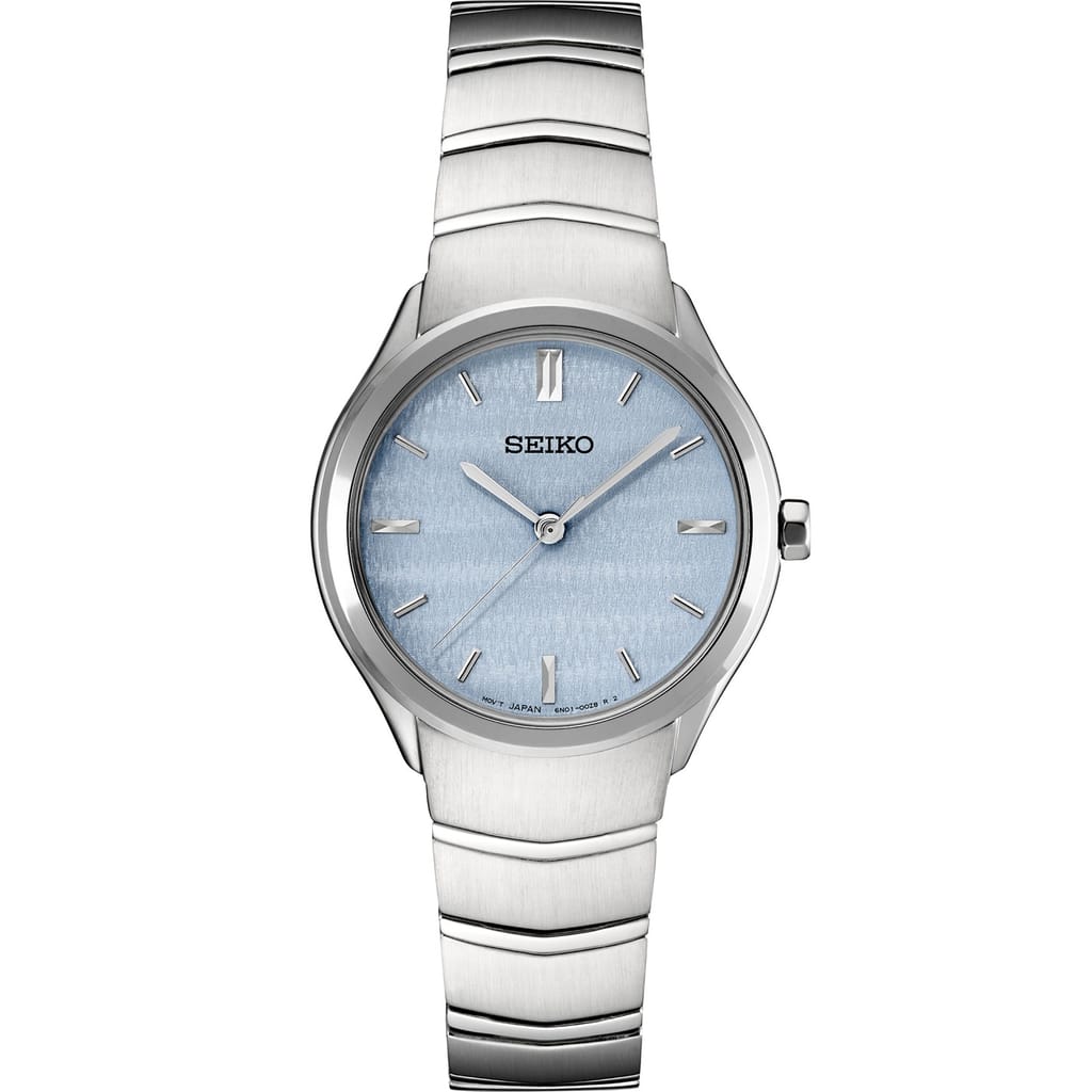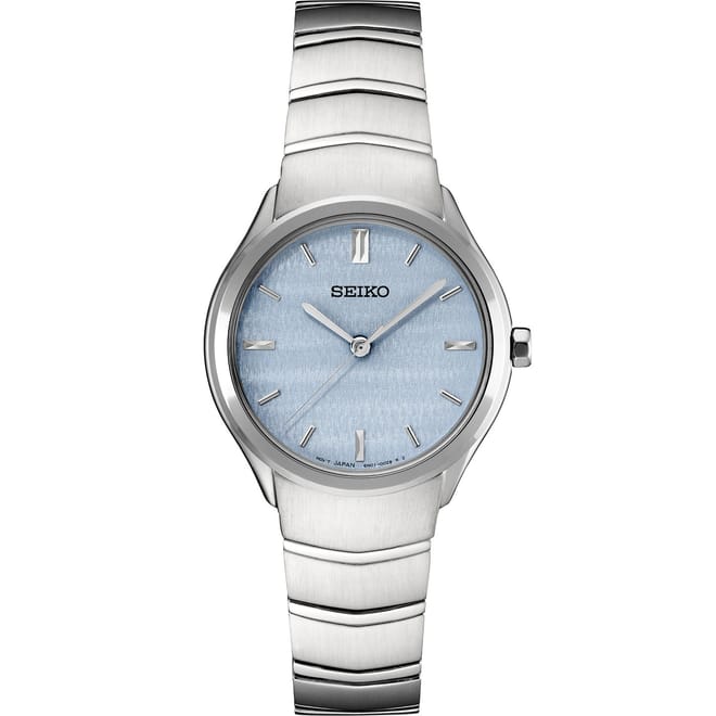 Discover the elegance of Seiko with this wrist watch, featuring an ice blue dial that adds a touch of sophistication. The analogue display ensures classic timekeeping, while the steel bracelet strap offers durability and style. Perfect for those who appreciate timeless design and quality craftsmanship. -
