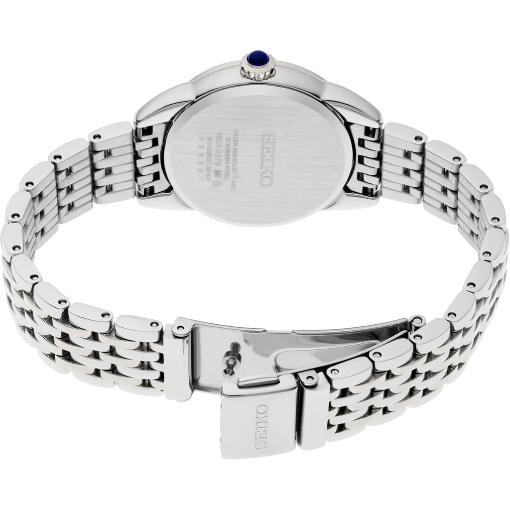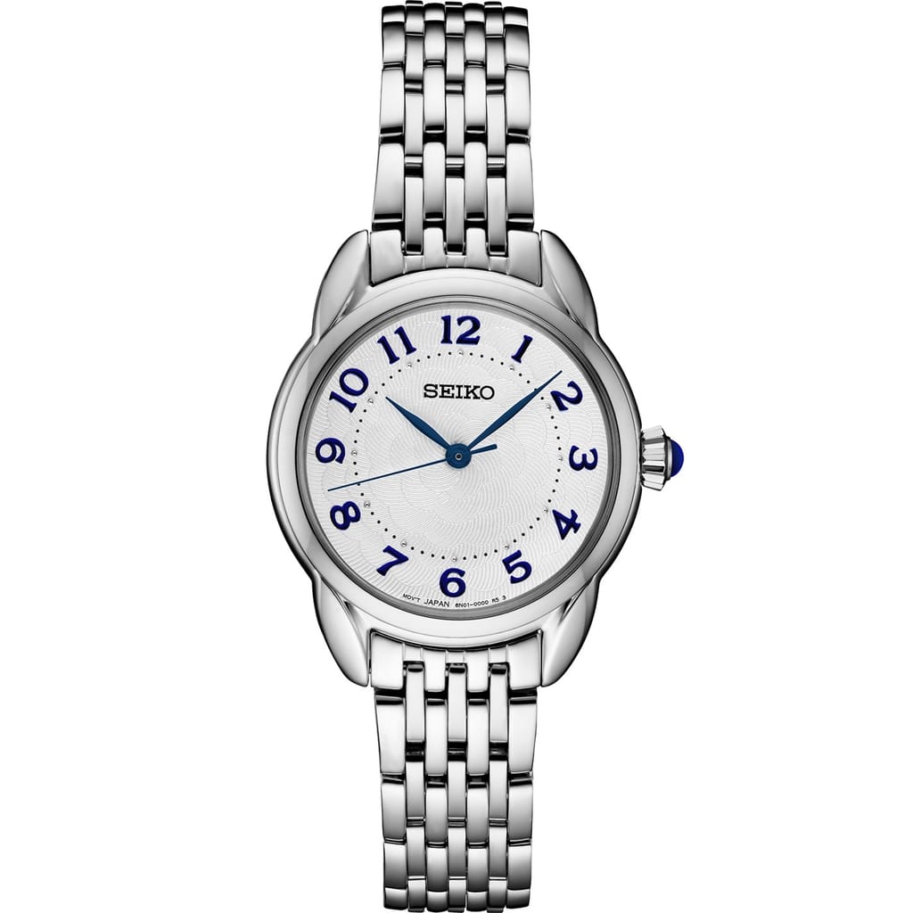 Discover the elegance of Seiko with this wrist watch, featuring a classic analogue display. The watch boasts a sleek white dial, perfectly complemented by a durable steel bracelet strap. Ideal for casual occasions, this timepiece combines style and functionality, making it a versatile addition to any collection. -