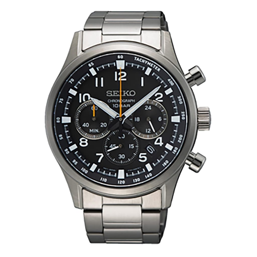 Discover the elegance of Seiko with this wrist watch, featuring a sleek black dial and an analogue display. Crafted with a durable steel bracelet strap, this timepiece is designed for both style and functionality. With water resistance up to 100m, it offers reliability and sophistication for any occasion. -