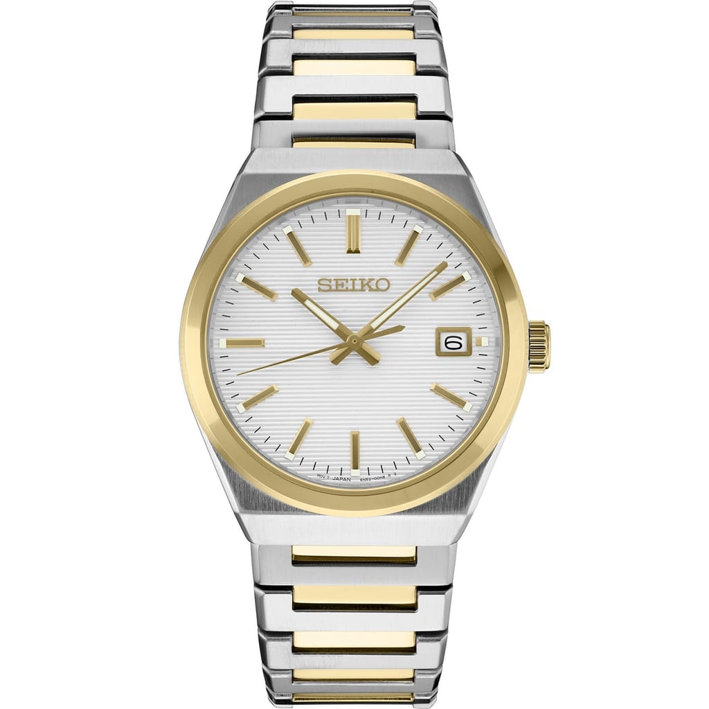 Seiko presents a sophisticated wrist watch featuring an elegant white dial and an analogue display. The watch is crafted with a durable steel bracelet strap, offering both style and resilience. This timepiece is a perfect blend of functionality and timeless design, making it an ideal choice for those who appreciate classic elegance. -