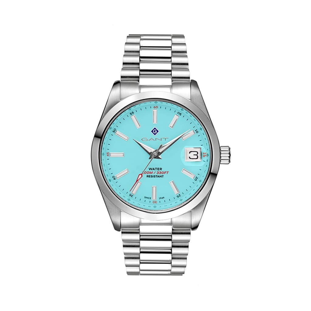 Discover the elegance of Gant with this wrist watch, featuring a striking turquoise dial. The analogue display is complemented by a durable steel bracelet strap, ensuring both style and comfort. With water resistance up to 100m, this watch is perfect for casual occasions. A timeless piece from Gant's collection, it combines functionality with a sophisticated design. -