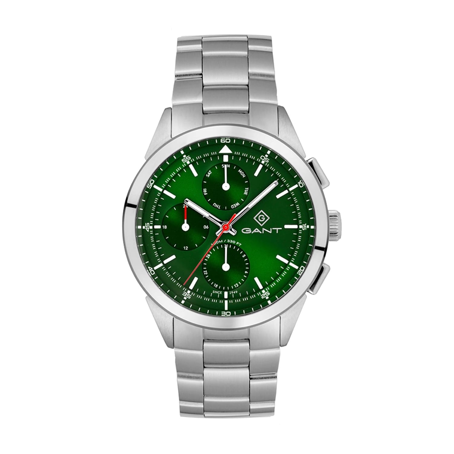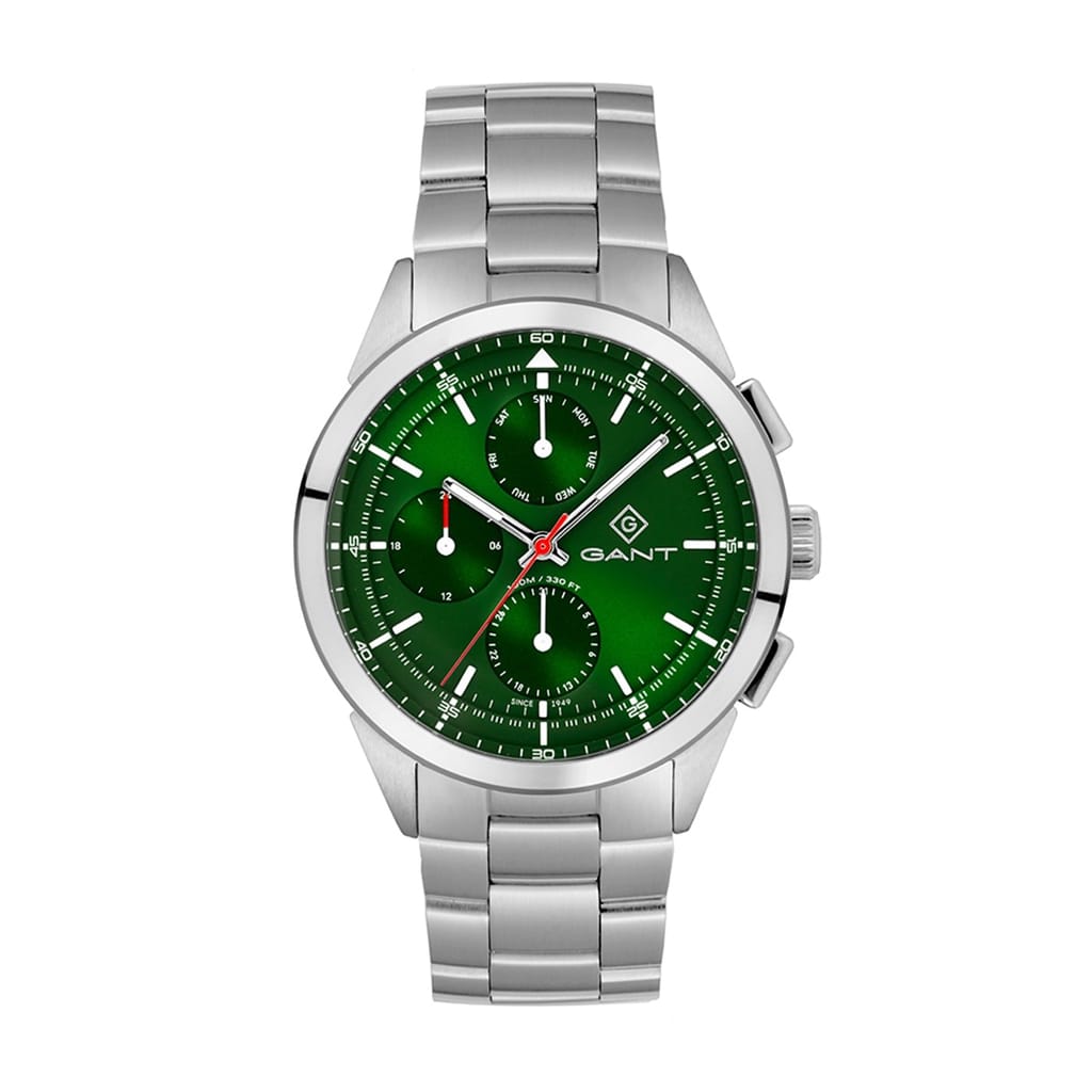 Discover the Gant wrist watch, a perfect blend of style and functionality. This analogue timepiece features a striking green dial, complemented by a durable steel bracelet strap. With water resistance up to 100m, it is ideal for various activities. Part of the casual collection, this watch is a versatile addition to any wardrobe. -