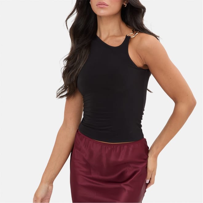 Designed with a flattering fitted silhouette, the hardwear elevates this piece, making it perfect for adding a modern, statement-making element to your wardrobe. Ideal for pairing with both casual and dressier looks. -