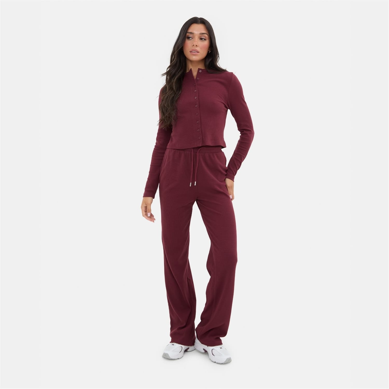 Effortlessly stylish and endlessly comfortable, these ribbed wide leg trousers are a modern essential. Crafted from a soft, stretch ribbed fabric, they offer a flattering high-rise fit and a fluid wide-leg silhouette that moves with ease.