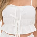 This ruched front strappy tie top offers a flattering and trendy silhouette perfect for warm-weather styling. Crafted from a soft, lightweight fabric, it features delicate adjustable straps and a ruched detail at the front that enhances shape and adds texture.