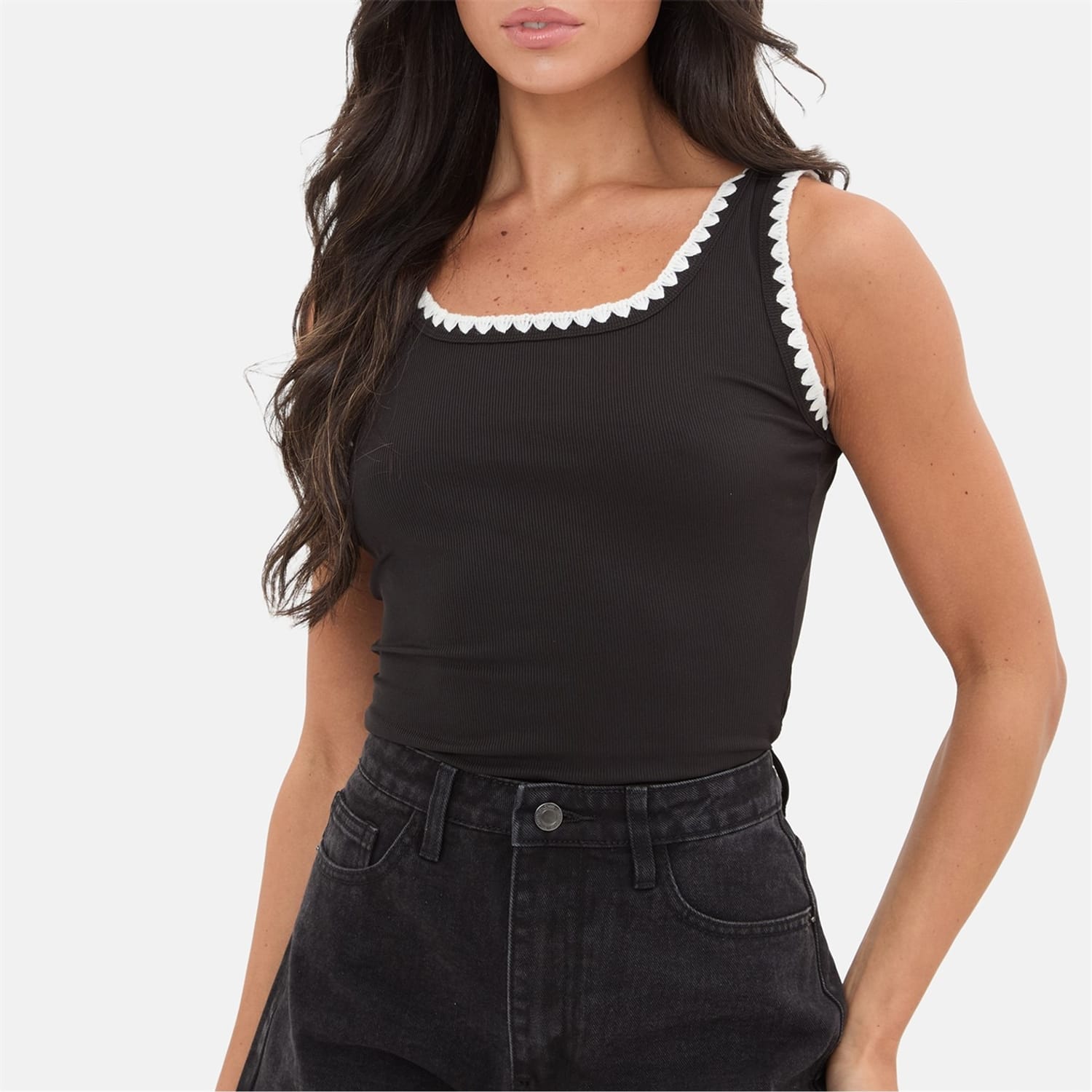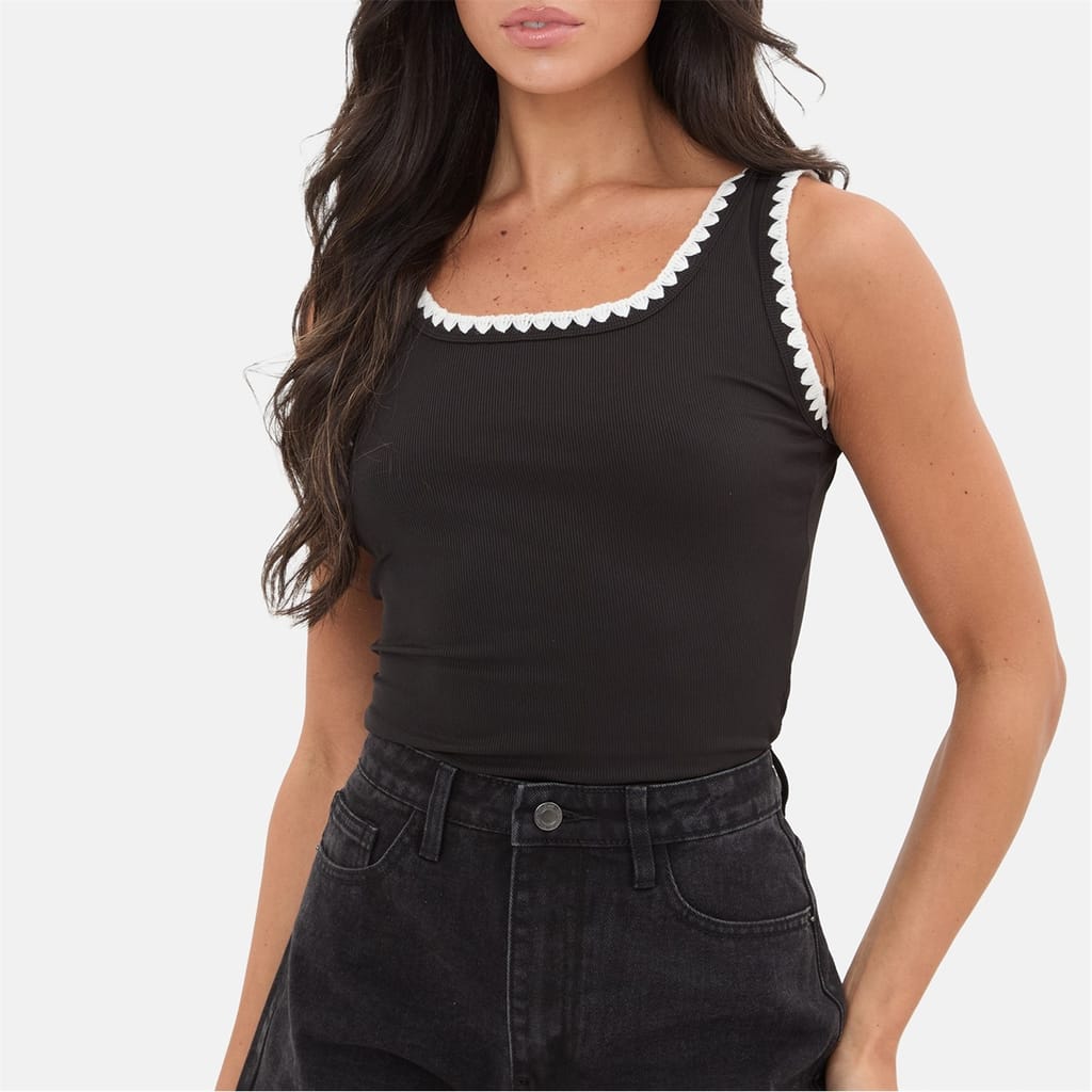 Elevate your wardrobe with this whipstitch vest top, featuring intricate whipstitch detailing that adds subtle texture and handcrafted appeal. Made from a soft, structured fabric, this sleeveless vest offers a flattering, fitted silhouette perfect for layering or wearing solo. -