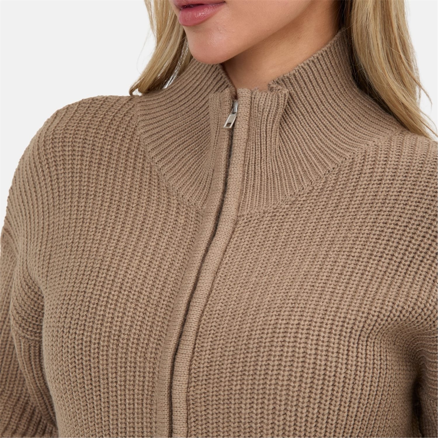 A modern take on a timeless layering piece, this zip-through knitted cardigan combines warmth with understated style. The relaxed fit and ribbed trims offer comfort and structure, making it perfect for layering over tees, blouses, or dresses. -